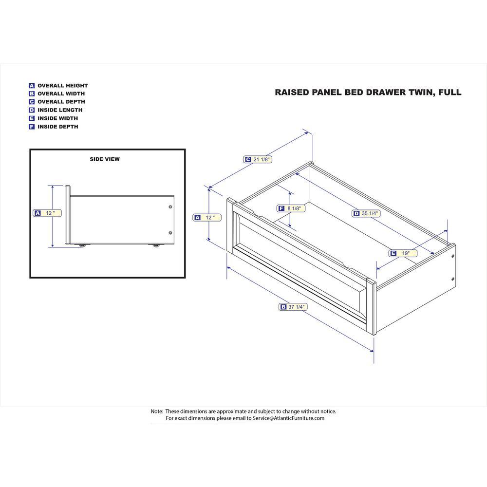 Traditionally designed with wooden inset panels, Atlantic Furniture Raised Panel Bed Drawers are the perfect addition to your Atlantic Furniture bed or bunk bed. Equipped with independent non-marking rollers, these matching under-bed drawers glide freely over both wood flooring and carpet. Manufactured using eco-friendly, plantation-grown hardwood.