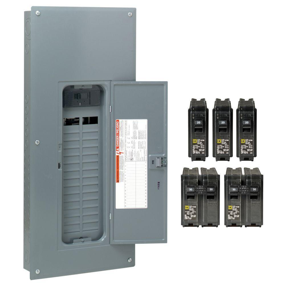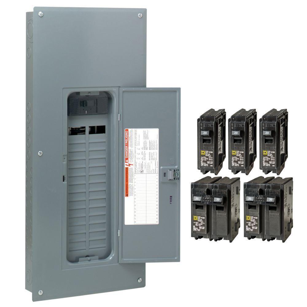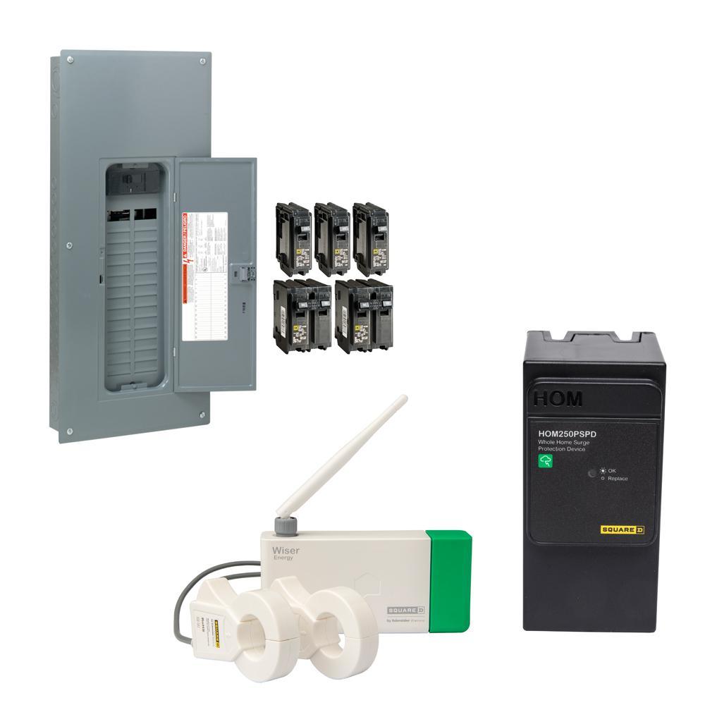 Includes 3 HOM120 Homeline 20 Amp 1-pole plug-on neutral circuit breakers, 2 HOM230 homeline 30 Amp 2-pole plug-on neautral breakers, a combination flush/surface cover, wiser energy monitor, a whole house Surge device