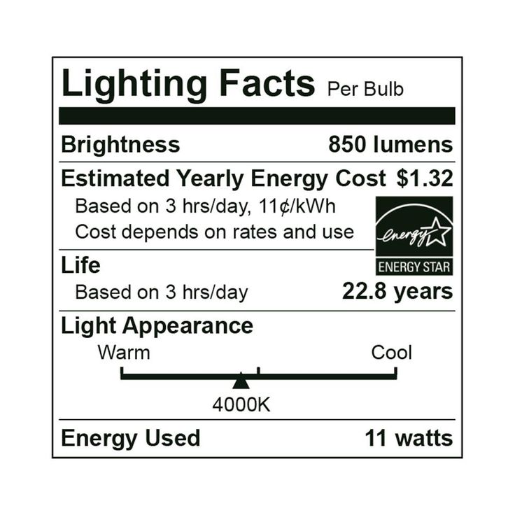 Estimated yearly energy cost: $1.32 (Based on 3-hours/day, 11¢/kWh, costs depend on rates and use)
