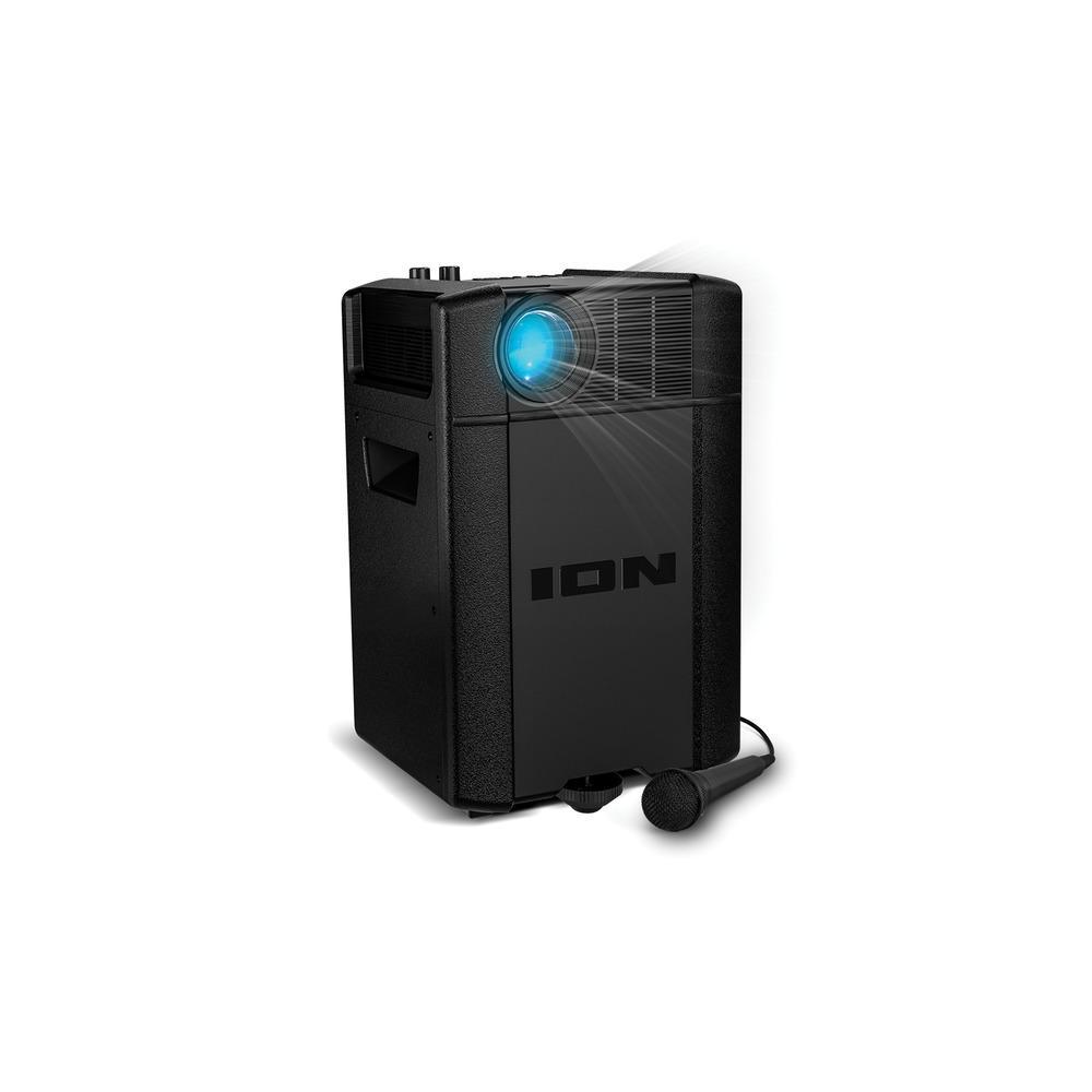 The Ion IPA119 Projector Plus is the life of the party It projects karaoke and movies and streams music wirelessly If ever there was a total party in 1 box, Projector Plus is it because your room will come alive with color and motIon. This unit projects full-color karaoke and movies from 30 in. to an amazing 150 in. with its brilliant built-in projector. The Projector Plus fills the room with great sound and exciting lights, as well as terrific visuals. A powerful 4 in. full-range speaker and powerful on-board amp deliver great sound, plus you can stream music from any Bluetooth-enabled device. Using Projector Plus is a snap-simply play your program from a thumb drive via USB or from your laptop via HDMI. A high-quality microphone is included for karaoke.