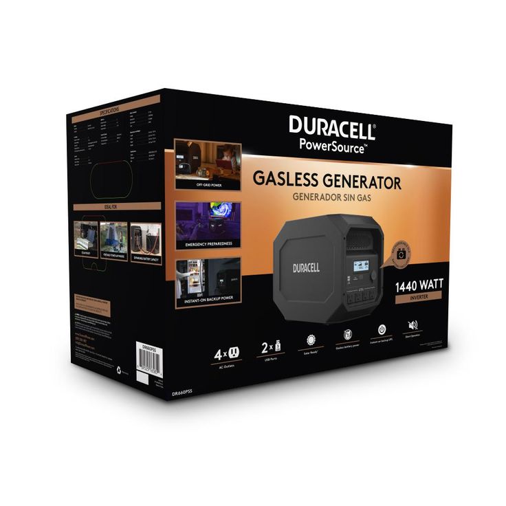 Duracell's PowerSource 660 delivers power you can depend on anytime, anywhere. Whether you're hunkered down during an emergency or enjoying the great outdoors, you can rely on the Duracell PowerSource 660 to deliver clean and quiet power without the noise, gas or fumes of a traditional gas-powered generator. With 660-Watt/hour of battery capacity the PowerSource has plenty of power to keep your devices powered up and can even be daisy chained with an external battery for increased capacity. The quiet, battery operated PowerSource is a better alternative to gas generators and can be used indoors during extreme weather. The PowerSource is ideal for critical devices that require uninterrupted power because it can instantly transition from AC wall power to its internal battery power in the event of a power outage. The PowerSource features 4 AC outlets, 2 USB ports and a 12-Volt DC port for vehicle accessories. With 1800-Watt of peak output power (1440-Watt continuous) you can run major household appliances like refrigerators or TVs with no problem. The integrated solar controller is compatible with most solar panels and uses the standard Anderson connector. You can even connect the PowerSource to your vehicle via the daisy chain terminals to use the vehicles' alternator for recharging when solar or AC power is not available. You can't always know when you'll be left without power, but you can prepare for it with the PowerSource 660 from Duracell.