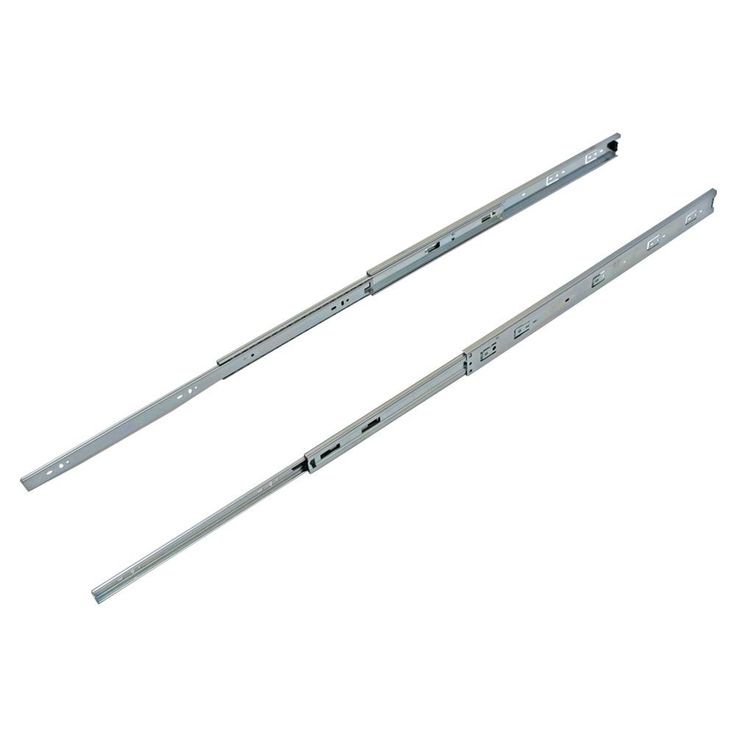 The 1175 Drawer Slide Series has a bright zinc finish and a ball bearing design that operates smoothly and is sturdy enough to support up to 100 lbs. The drawer is full extension and even features over-travel, meaning that the drawer can extend past the front of the cabinet (great for drawers under counter tops). It also has a lever disconnect for easy removal.