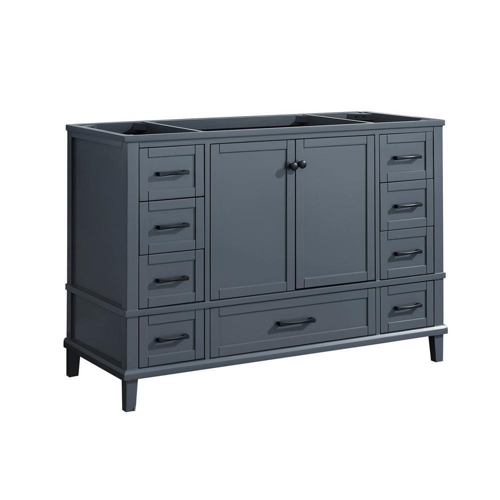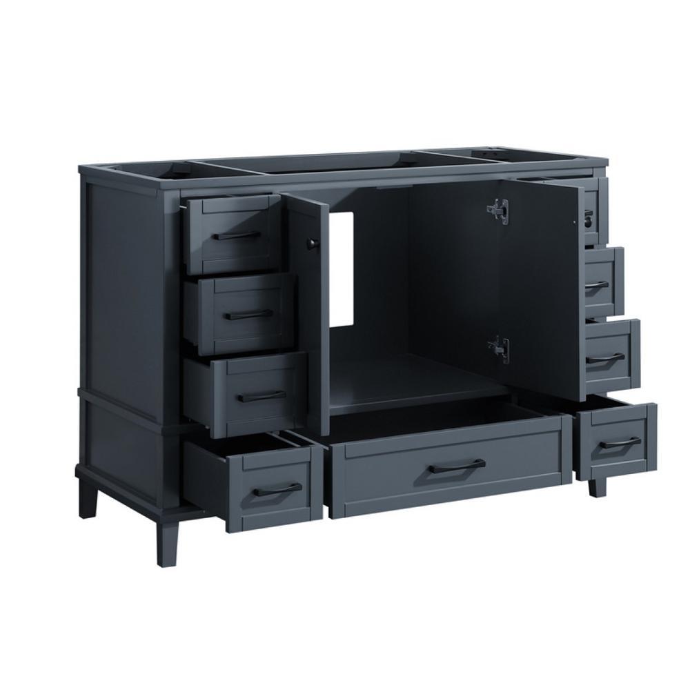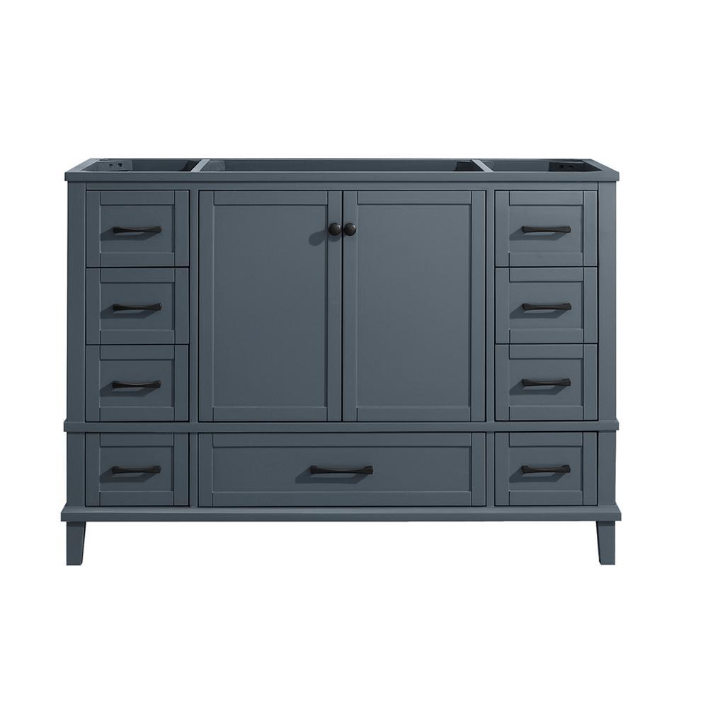 Restore beauty to your bathroom with the Merryfield 48 in. Bathroom Vanity Cabinet in Dark Blue-Gray. This handsome cabinet features simple lines with subtle styling. Black finish hardware, solid wood frame, soft-close glides and hinges, and adjustable shelf speak to superior construction. Combine it with the top of your choice, plus the matching mirror or mirror cabinet and linen tower to create an elegant ensemble.