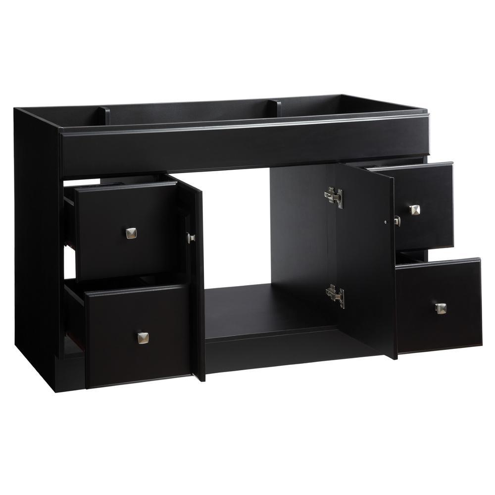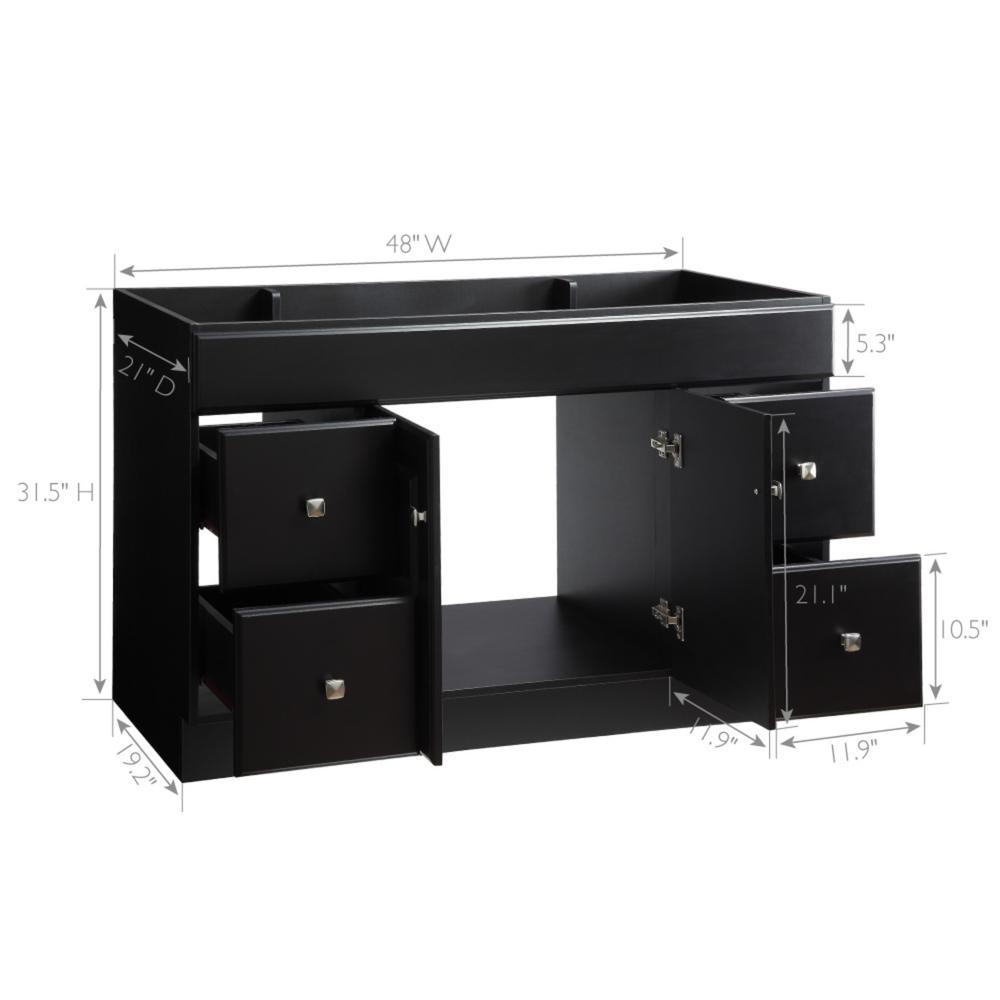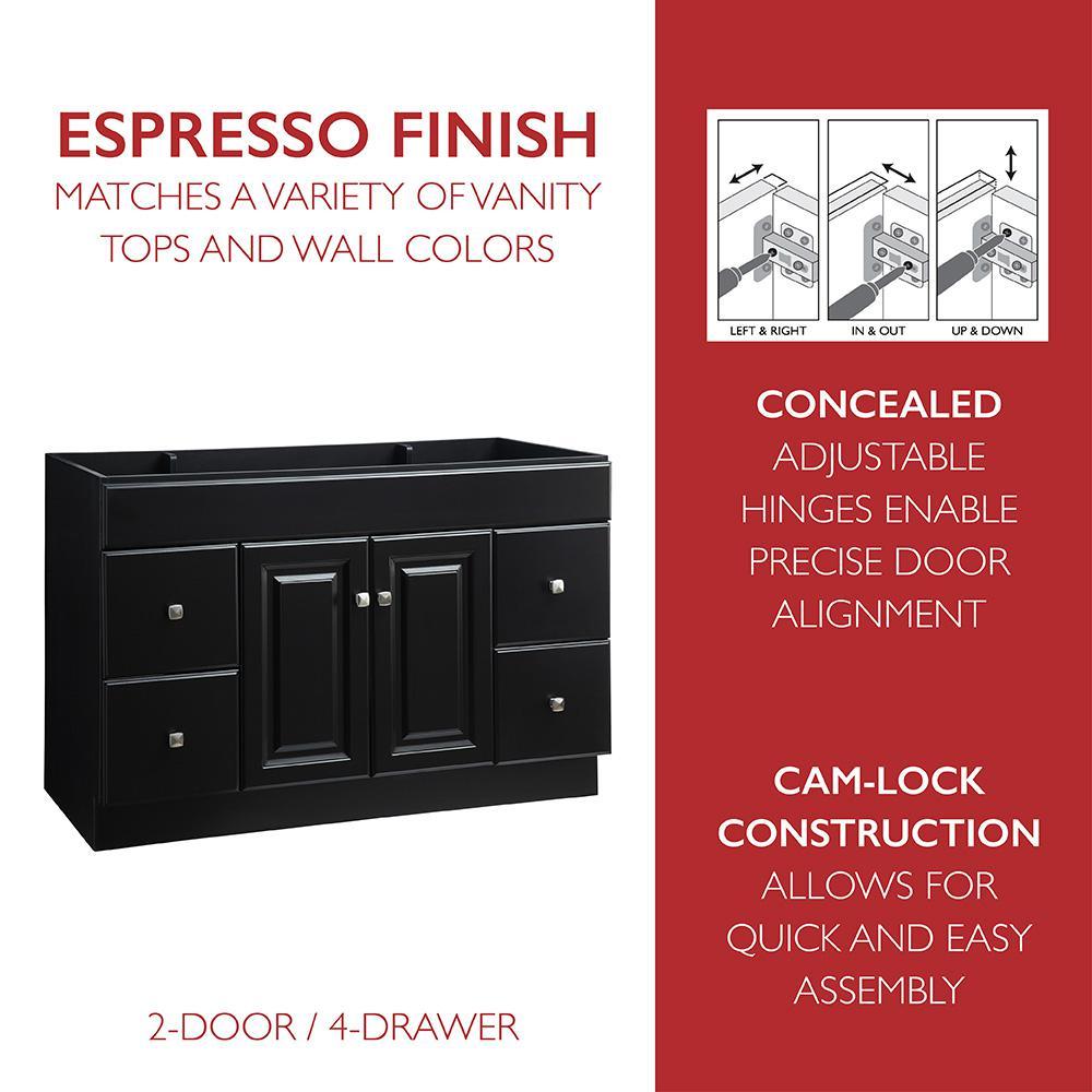 Vanity cabinet has 2-doors, 4-drawers and 1-faux drawer front