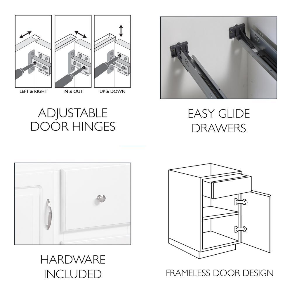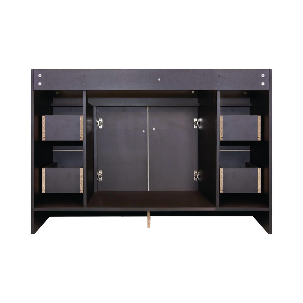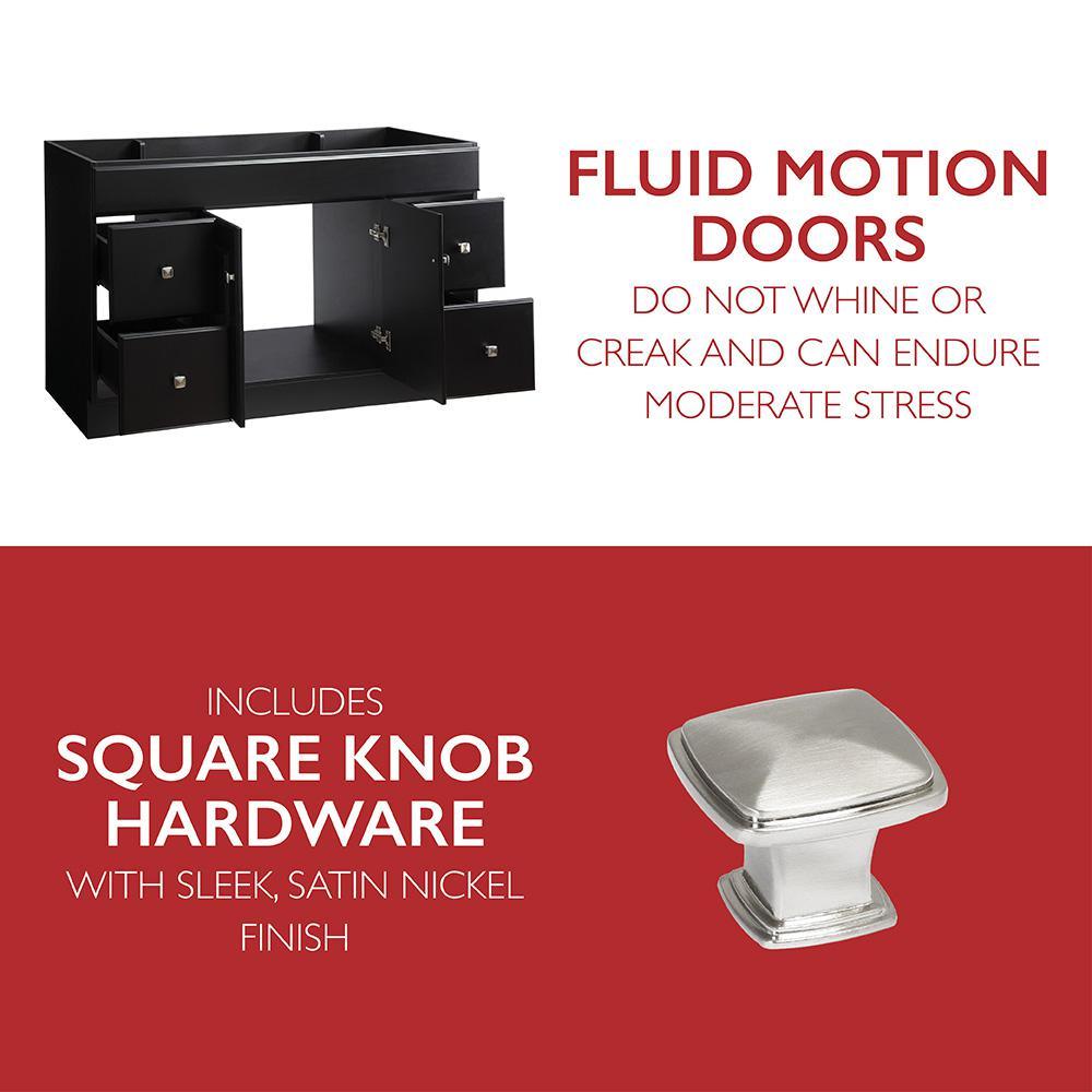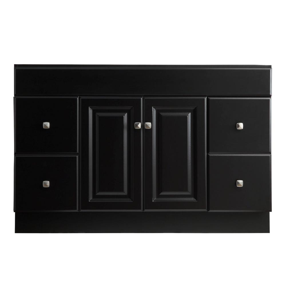 Vanity cabinet has 2-doors, 4-drawers and 1-faux drawer front