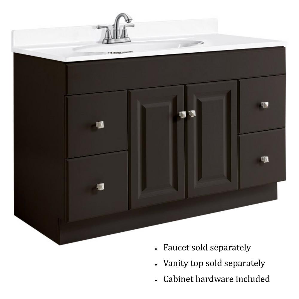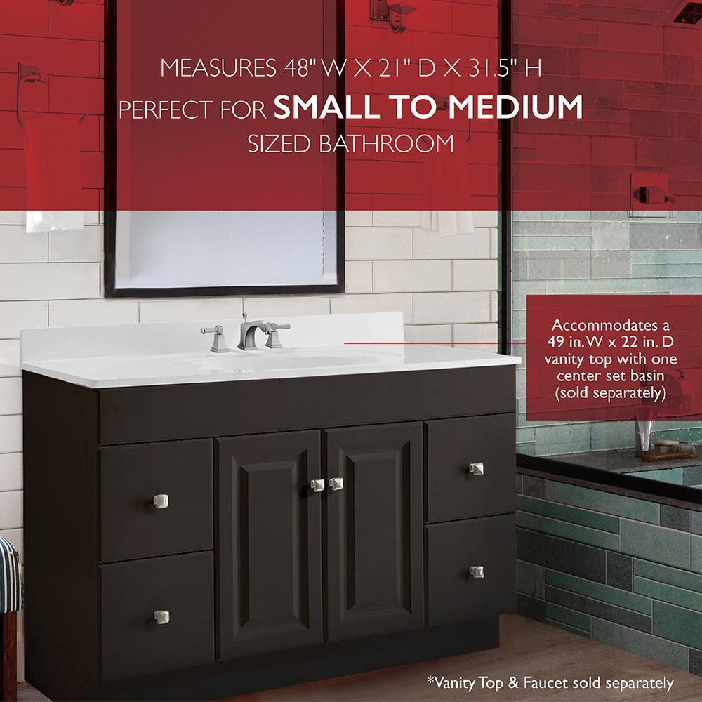 Accommodates a 49 in. wide x 22 in. D center set basin vanity top