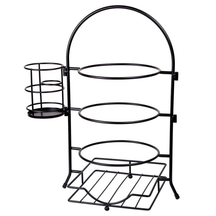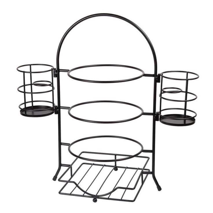 3-Tier Black Buffet Caddy Serving Rack With 2-Detachable Napkin Flatware Holders