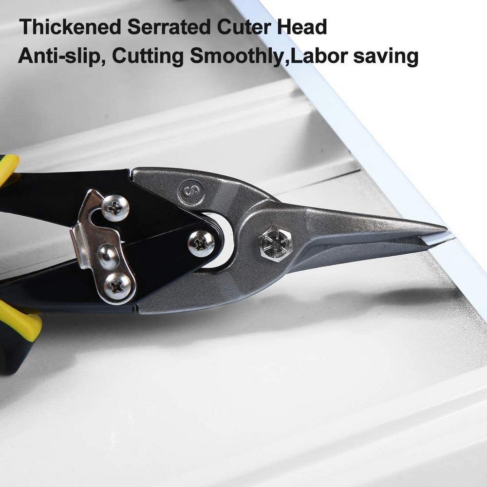 Includes 10 in. straight-cut, 10 in. left-cut, and 10 in. right-cut