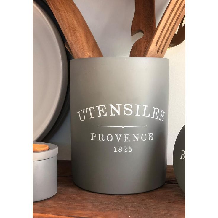 7 in. x 5 in. Slate Grey Round Cement Kitchen Utensil Holder