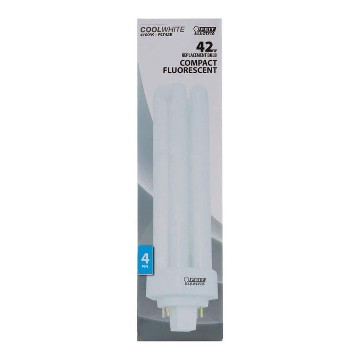 The Feit Electric 200-Watt Equivalent PL Cool White (4100K) Non-Integrated CFL Light Bulb uses only 42-Watt of electricity. These compact fluorescent lamps have a 4-pin base GX24Q-4 and PL shape. These lamps have a color temperature of 4100K for a cool white light. Choose a dependable recessed fixtures and general purpose light bulb for residential or commercial applications.