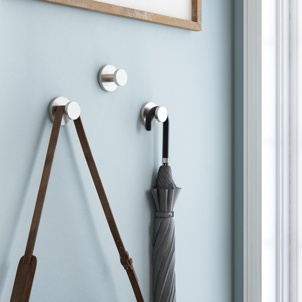 Keep everything in it's place with this Modern Round Post hook. With its casually modern style you can make a statement on your wall by hanging multiples and get organized by hanging all of our clothes, coats and bags up. for ease installation hardware and instructions are included.
