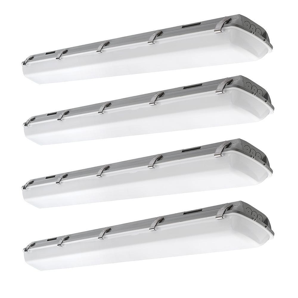 ETi's 4 ft. Integrated LED Vapor Tight is to prevent moisture and dirt from compromising the housing and damaging interior wires and components inside the fixture. It emits vibrant 3600 Lumens of premium LEDs projecting 4000K Bright White color temperature of light output using 34-Watt of electricity. Replaces three 32-Watt outdated T8 fluorescent tubes. It is lightweight, easy to install and maintenance free with no bulbs to replace. It is manufactured of impact resistant plastic resins that are designed to keep moisture, dirt and dust out. 2 mounting options - surface or suspended - three 3/4 in. knockouts, mounting clips, chains and additional hardware included. Ideal for parking garage, car wash, pool deck, refrigerated storage (restaurant) and greenhouse or plant nursery.