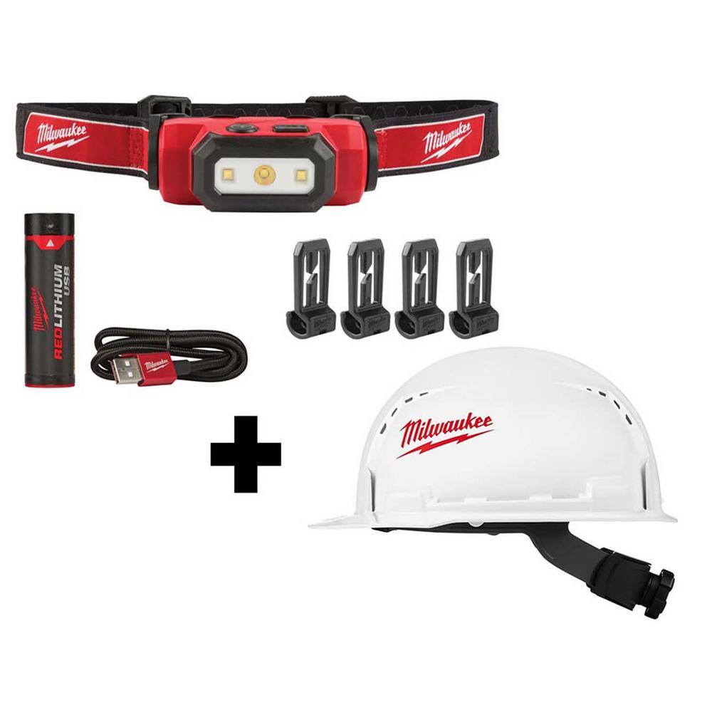 • Includes: hard hat headlamp, REDLITHIUM USB, USB charger, BOLT white type 1 class C front brim vented hard hat (48-73-1000)