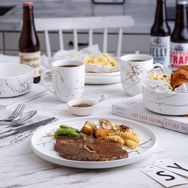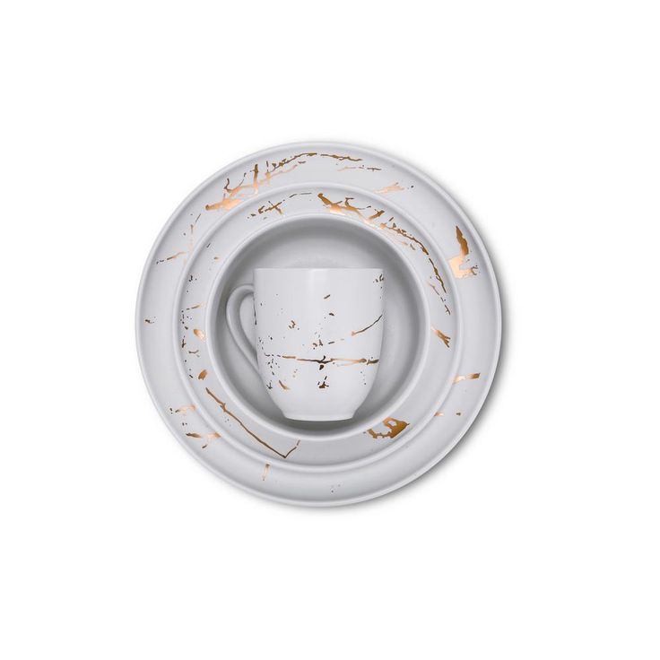 32-Piece Casual Gold and White Porcelain Dinnerware Set (Set for 8)