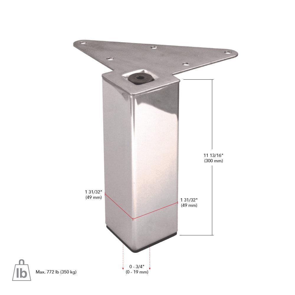 Add a contemporary, unique and modern touch to your kitchen, office or bedroom. This sleek square leg is available in 6 heights and 4 finishes. Practical, functional and adjustable.