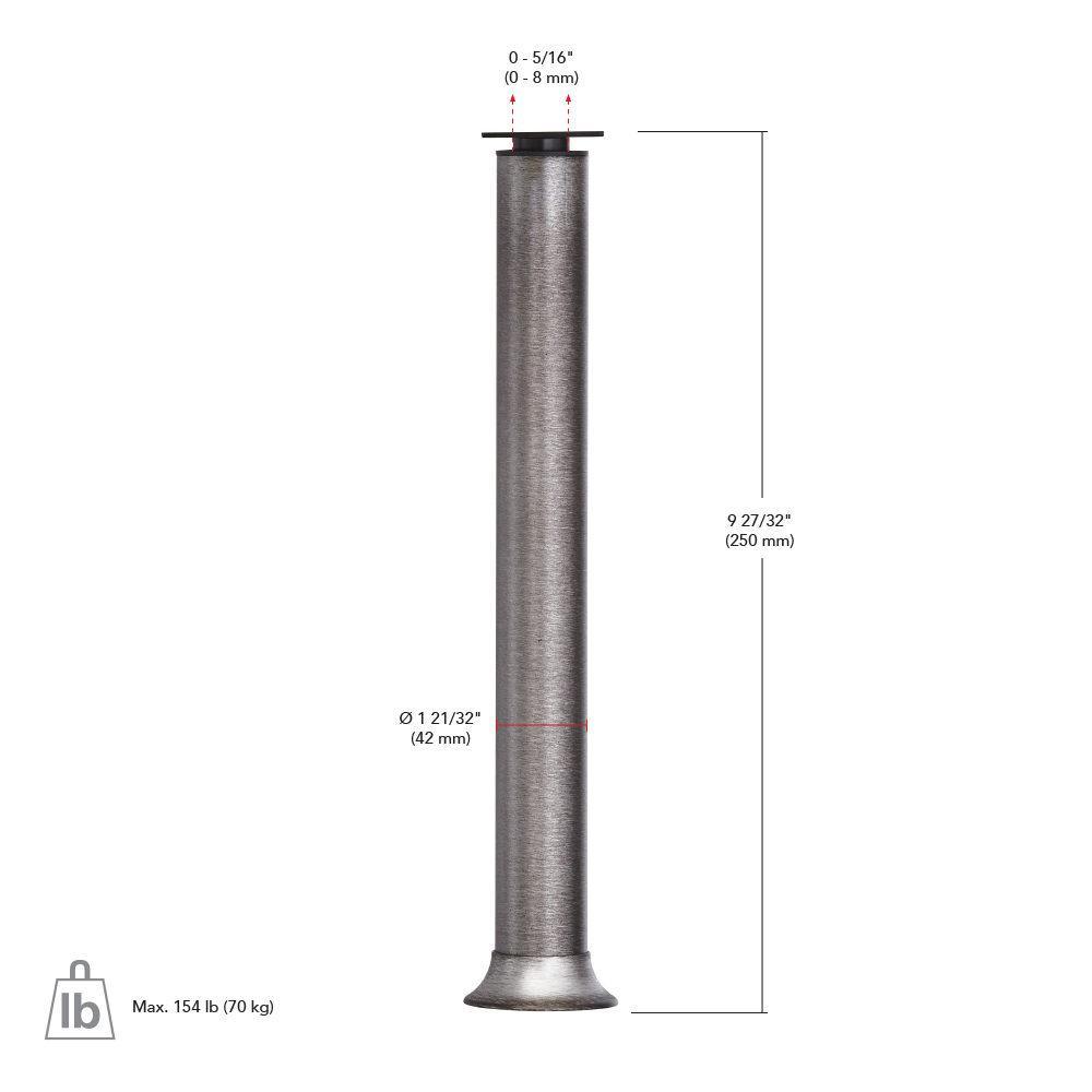 9-27/32 in (250 mm) Stainless Steel Adjustable Vintage Round Legs