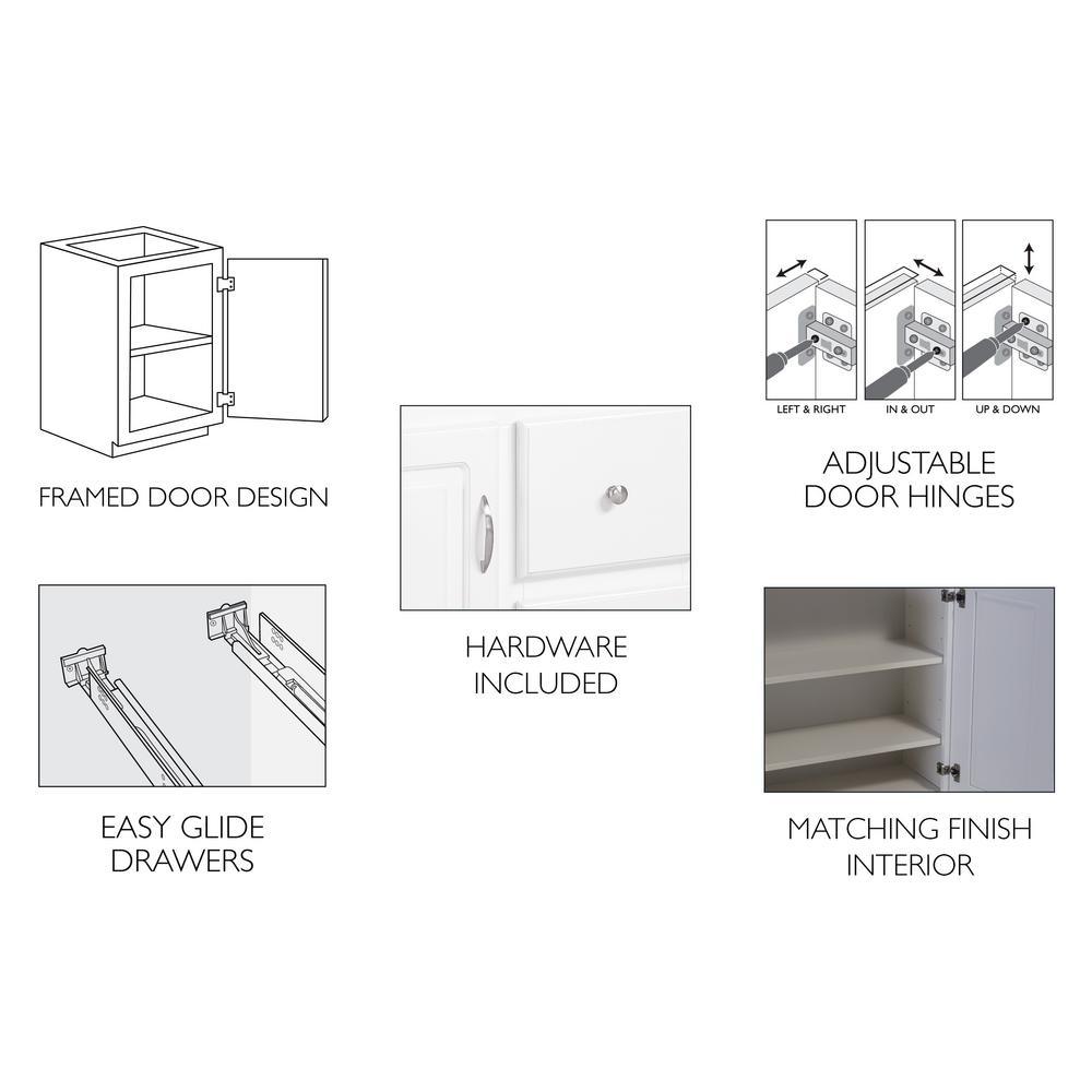 Give your bathroom a boost of elegance with the Design House 72 in. Concord Vanity Cabinet. Modern design meets traditional charm, this piece offers clean lines and a durable white finish. Features include 2 fully functional drawers (1 faux drawer) with easy glide drawer hardware and 4-doors that conceal generous interior space, perfect for storing toiletries, cleaning supplies, and more. The vanity base measures 72 in. x 21 in. and comes unassembled with satin nickel hardware included.