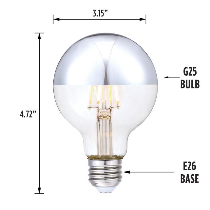 Regular price $26.49This 4.5-Watt G25 Half Chrome Filament LED Dimmable Light Bulb (6-Pack) will enhance the ambiance of your lighting fixtures. This LED globe light bulb is an ideal energy-saving alternative to incandescent half chrome globe light bulbs. The mirror-like finish reflects light back toward the fixture producing less glare and a soft white ambient glow perfect for use in pendant lights and vanity fixture applications. Suitable for use in enclosed fixtures and damp locations. This energy-saving alternative reduces energy costs, saving up to 89% over its lifetime when used in place of a traditional incandescent 40-Watt light bulb. LED bulb is dimmable for task and mood lighting applications. Make the switch to Westinghouse LED light bulbs from Westinghouse, a trusted, global brand. Westinghouse knows lighting and offers products with exceptional quality, reliability and functionality. Product reference number 51691.