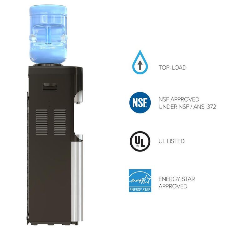 Hot Cold and Room Temp Water Dispenser Cooler Top Load, Tri Temp, Black and Stainless Steel, Essential Series
