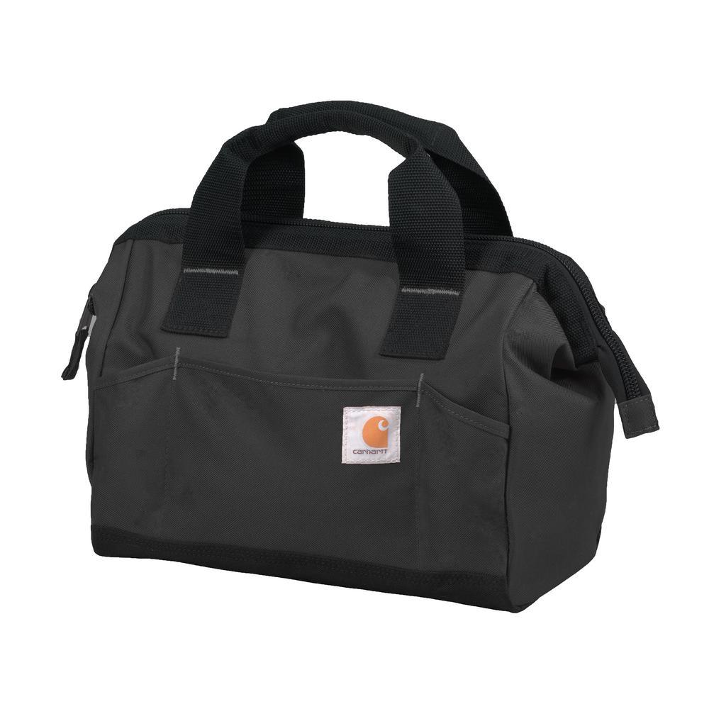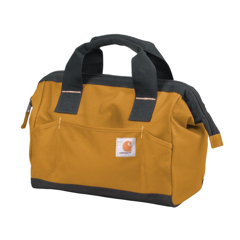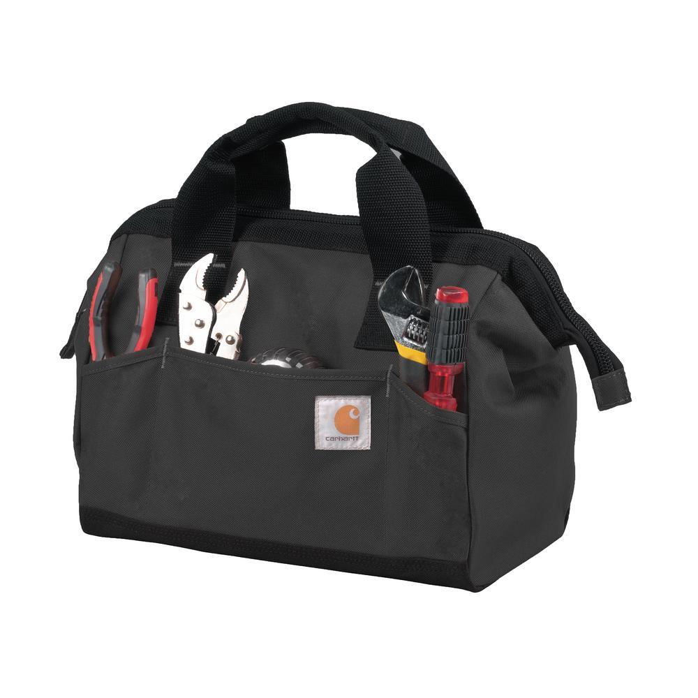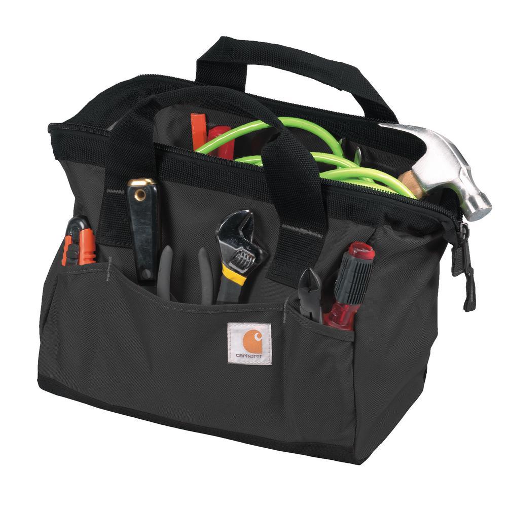 No frills, no fuss. Just a space for every tool. It's that simple. The Trade Series Tool Bag built of sturdy Poly with Rain Defender durable water repellent keeps your tools clean, dry and easily accessible. The internal metal frame offers structure to the bag so you can get in and get out without it collapsing in on itself. Tools stay organized and easy to find with a variety of different sized pockets and loops. Additional Details: YKK zippers, metal hardware, rugged comfort grip haul handles, triple needle stitch, Carhartt logo patch.