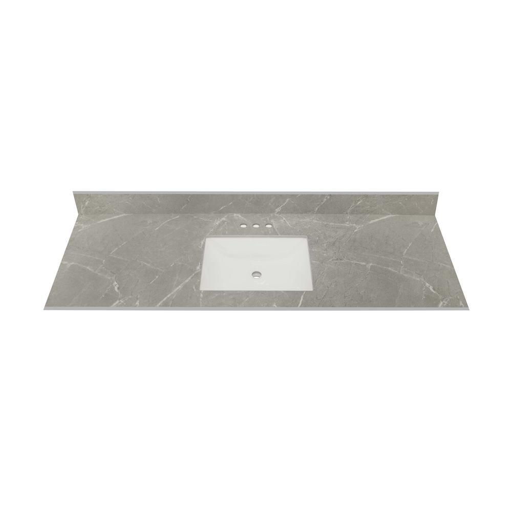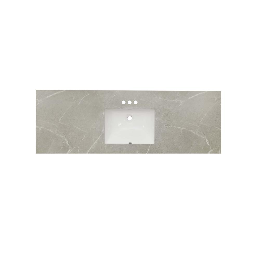 61 in. W x 22 in. Vanity Top in Soapstone Mist with Single White Sink and 4 in. Faucet Spread
