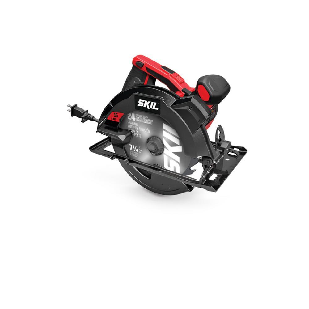 For the more experienced user who needs a powerful circular saw with advanced features Skil 5280 7-1/4 in. circular saw is the saw for the job. The 15 Amp motor has the power and performance you need to quickly cut lumber and sheet goods for a room addition, deck and more. The single-beam laser guides cuts more accurately while the integrated dust blower keeps the line of cut sawdust free. The 51° bevel, with positive stop at 45°, gives a variety of cut options, while blades changes are easier with spindle lock and on-tool wrench. The 5280 includes a 24 tooth blade and a carrying bag.