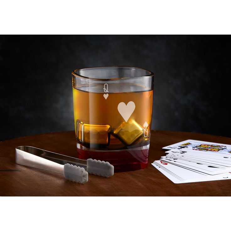 Poker Queen of Hearts 11 oz. Whiskey Glass with Accessories