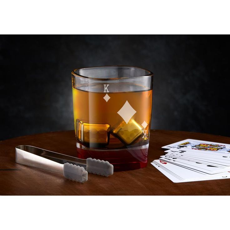 Poker King of Diamonds 11 oz. Whiskey Glass with Accessories