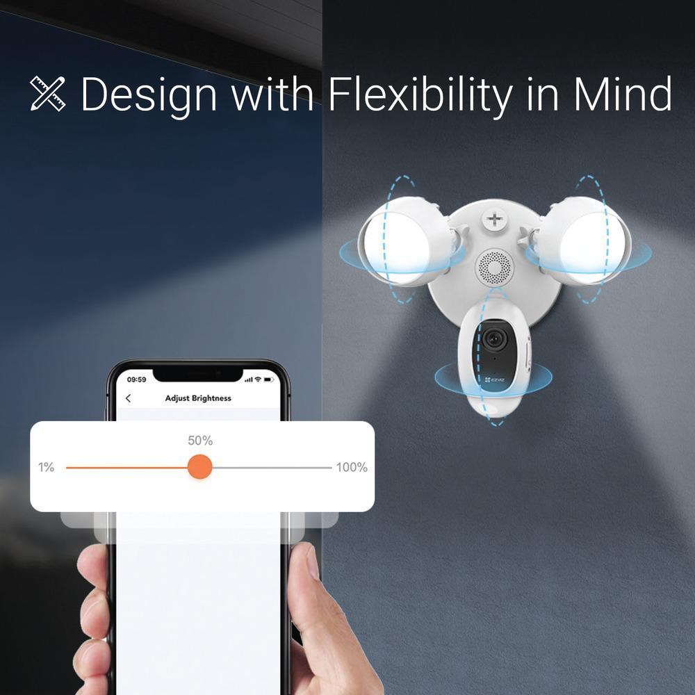 Manual brightness of 2 lights (up to 2,000 Lumens) and security control through EZVIZ app