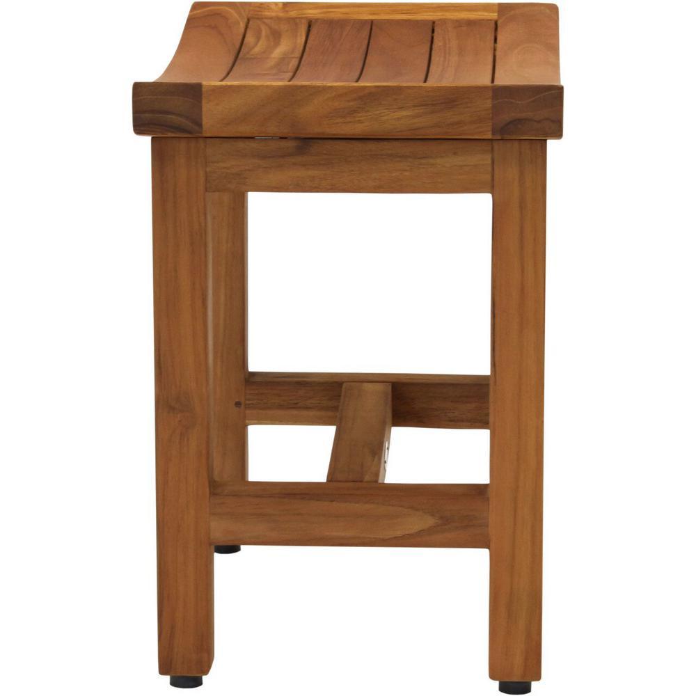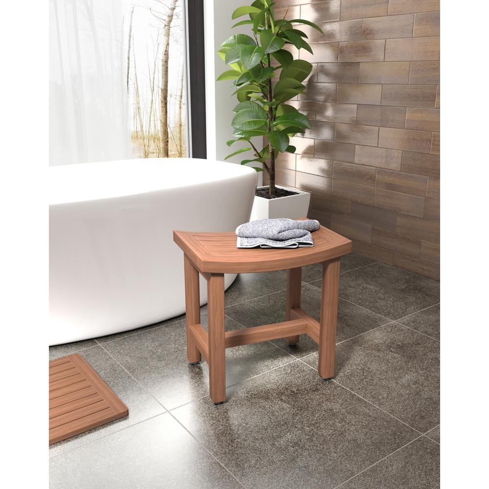 Add comfort and ease to your morning routine with a teak shower bench, AquaTeak is proud to present this beautiful 18” teak shower bench. This is the perfect accessory for any spa or personal shower. Don't settle for a plastic bench or a wood bench that will eventually succumb to moisture. Anti-skid, 100% teak wood, Water-resistant, Product Dimensions: 18 in. x 12 in. x 18 in. Product Weight: 13 lbs. Teak is strong and waterproof and it was even for ships and still is popular for decks and beyond. Bring this gorgeous wood into your home or business with this Sumba Lotus teak shower bench. Its rich color and sturdy construction will take any space to the next level. Invest today and enjoy our 30-day satisfaction guarantee as well as our five-year limited warranty. Sumba Lotus Teak Shower Bench Features: 18” height Authentic Indonesian teak Rubber feet Simple construction Comfortable bench.
