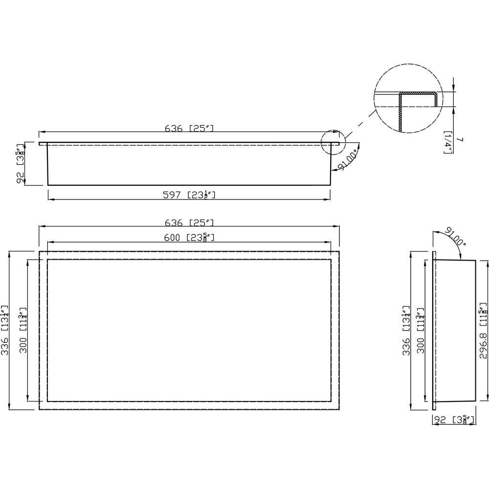- Leak proof niche is a 12 in. x 24 in. rectangle that is 3-5/8 in. deep, with a 1/4 in. lip around the perimeter