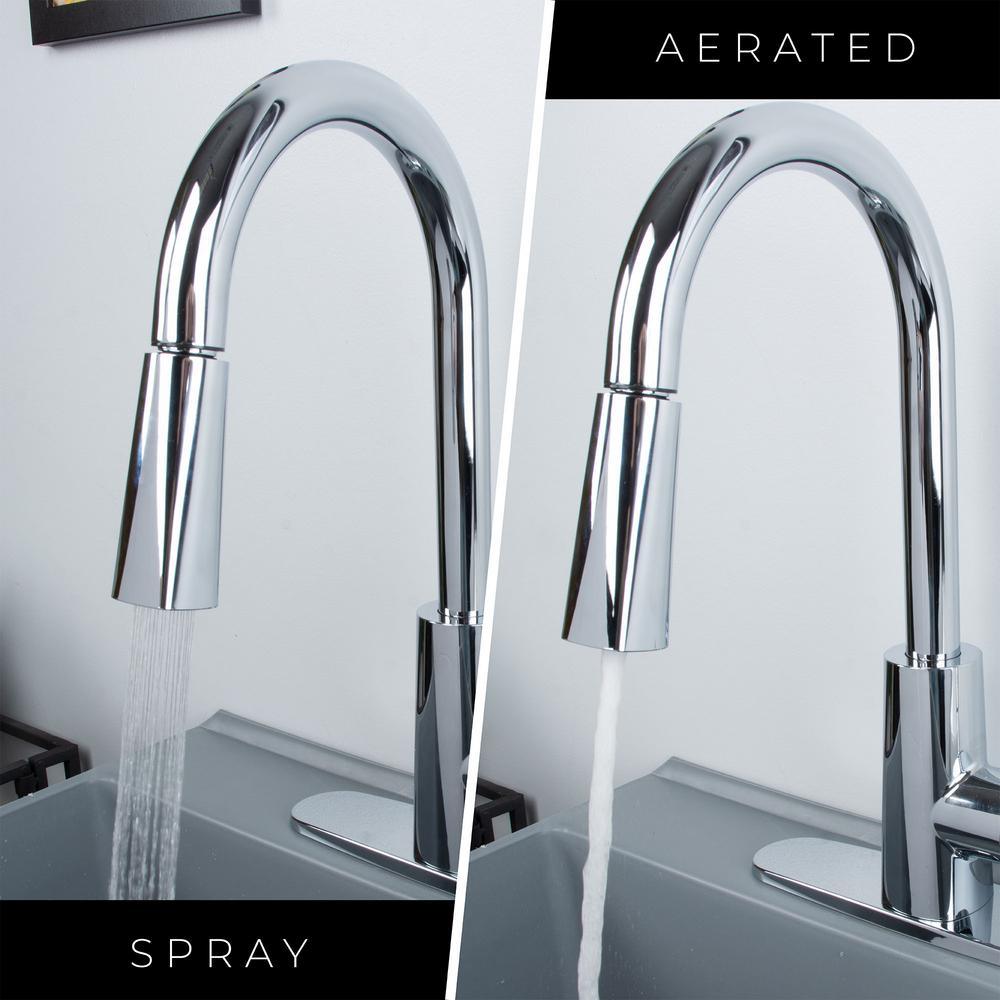 16 in. high-arc pull-down faucet with dual function spray or water stream