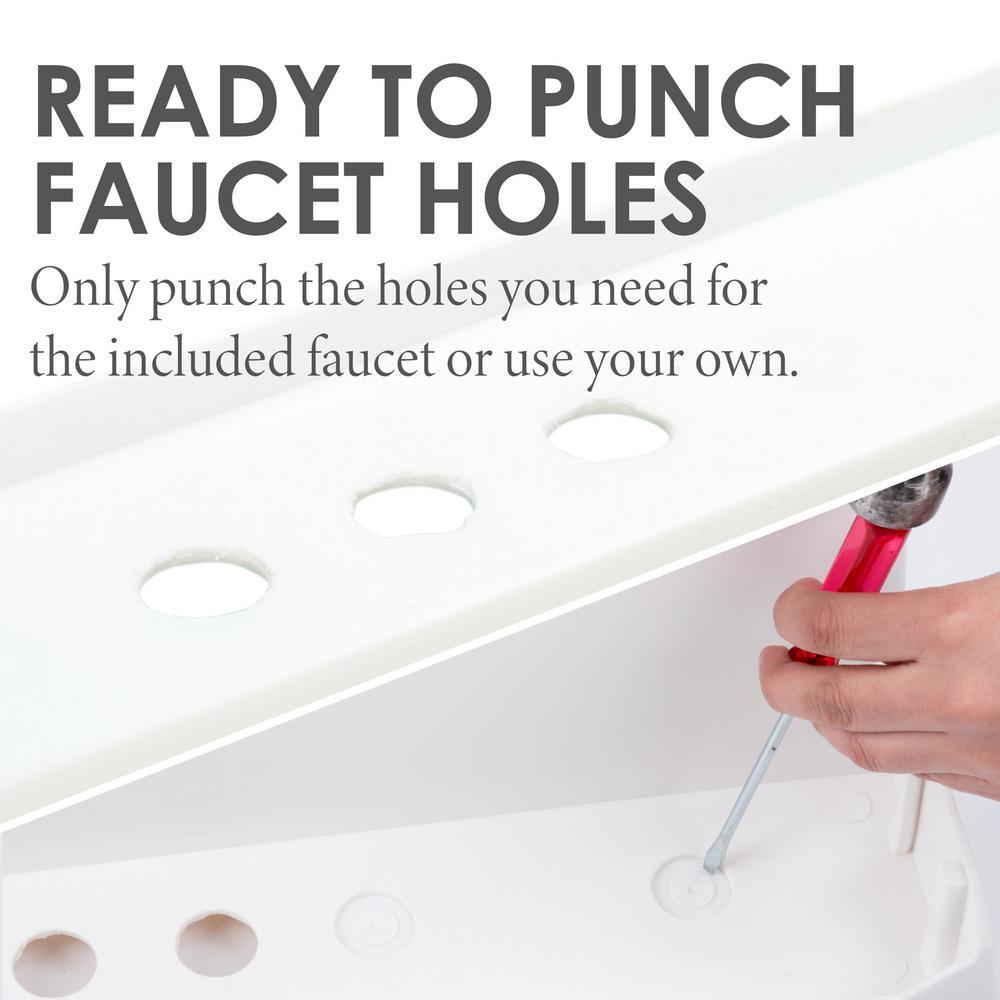 3.5 in. back deck with pitched back lip to place accessories and catch splashing