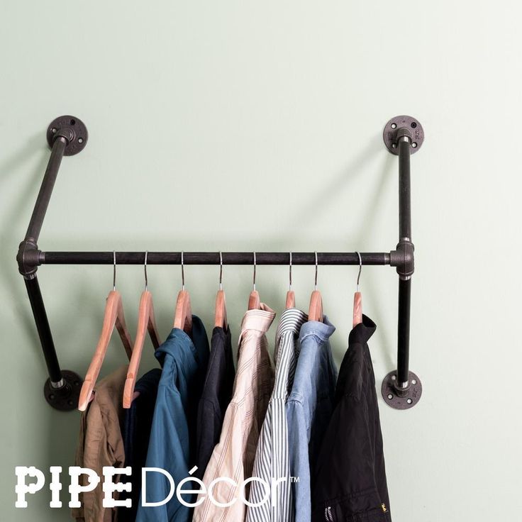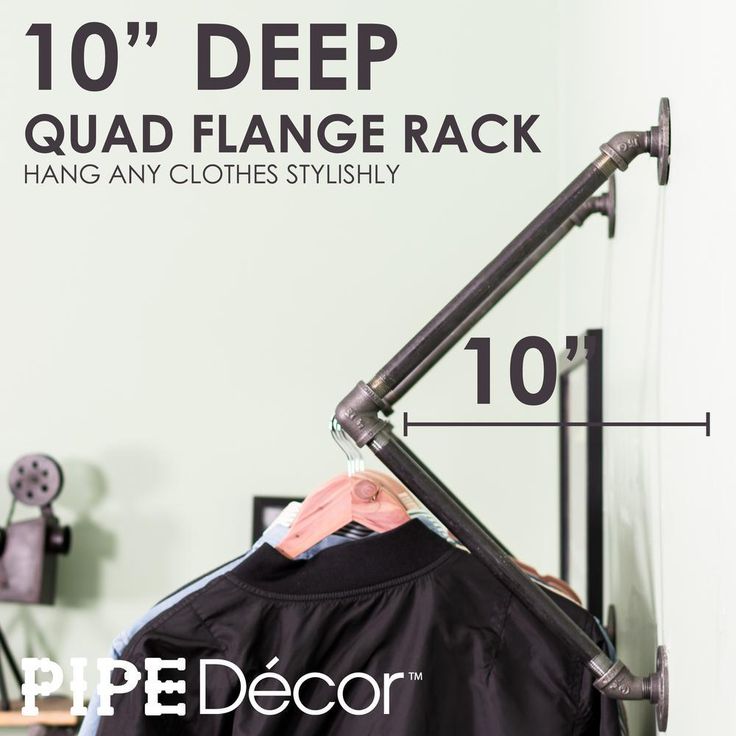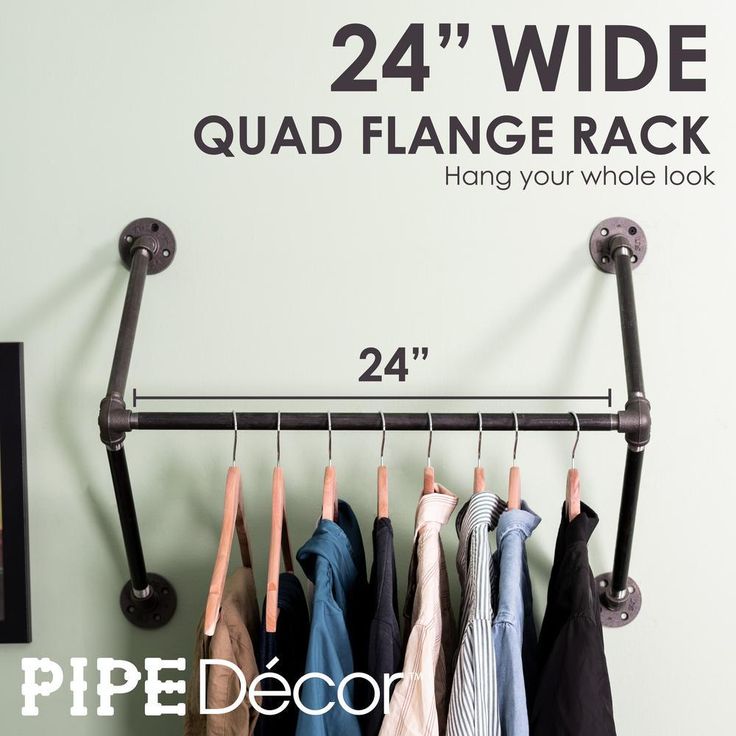1/2 in. x 2 ft. L Black Pipe Quad Flange Wall Mounted Clothing Rack Kit