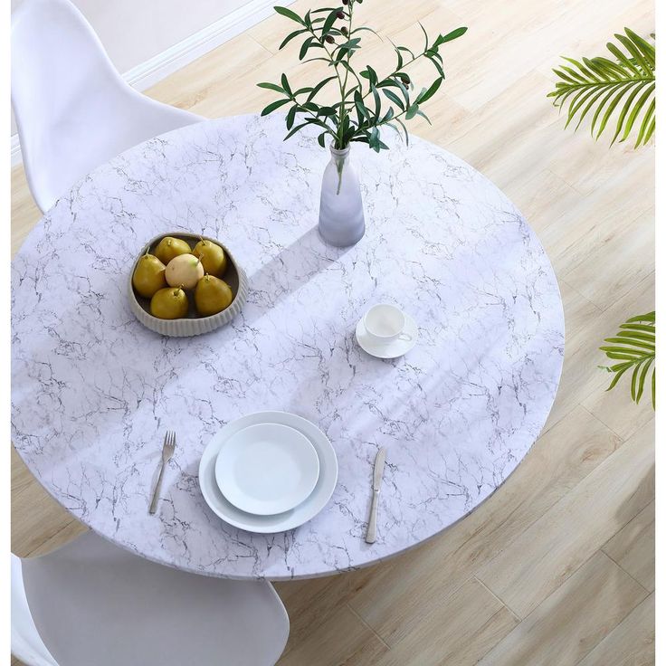 42" Cotton Fabric Fitted Table Cover, White Marble
