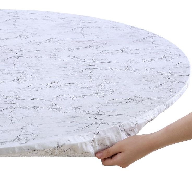 48" Cotton Fabric Fitted Table Cover, White Marble