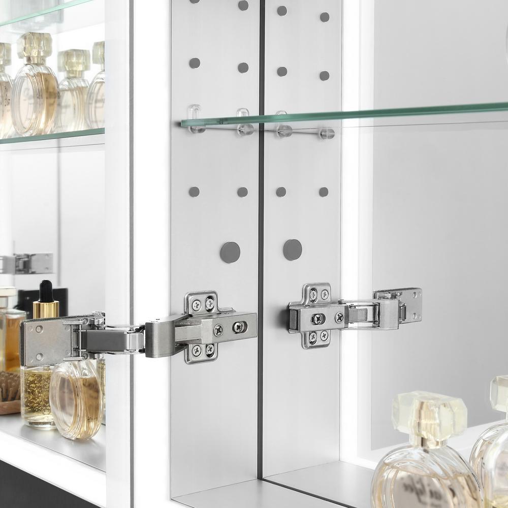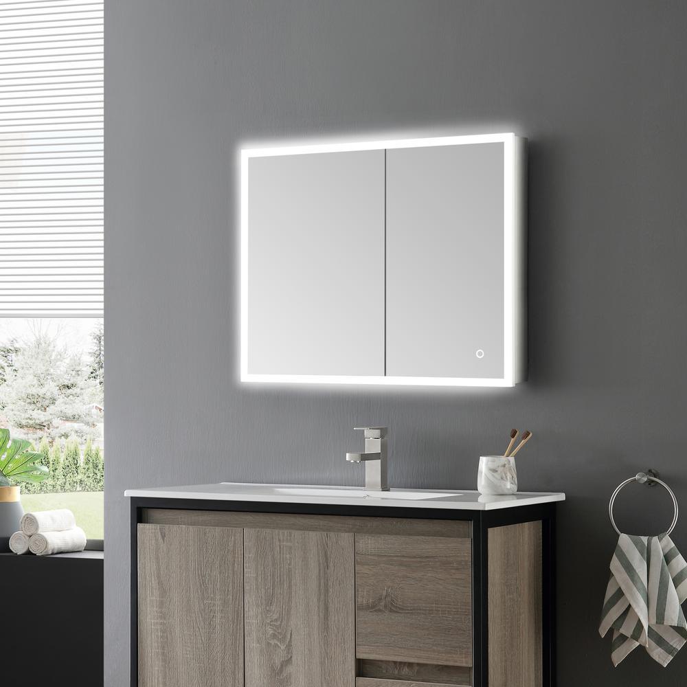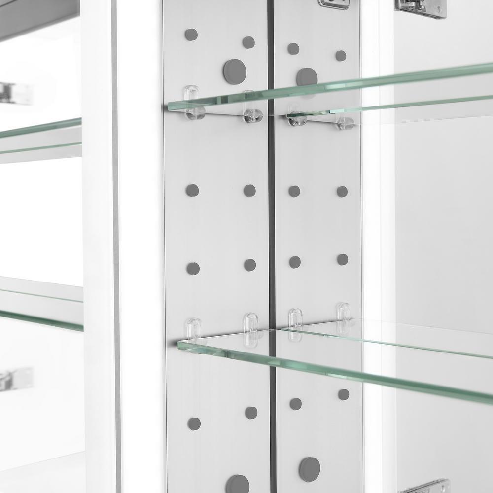 Elegant minimalism meets state-of-the art design with the Neva 30 in. x 24 inch landscape medicine cabinet by OVE Decors. Its durable all aluminum construction, fully mirrored double doors plus interior, soft-close hardware and handy adjustable height glass shelves pair with a striking integrated LED lighting surround. Enjoy bright, shadow less light that recreates the flattering qualities of natural daylight, with intensity easily controlled by a discreet smooth dimmer touch sensor.