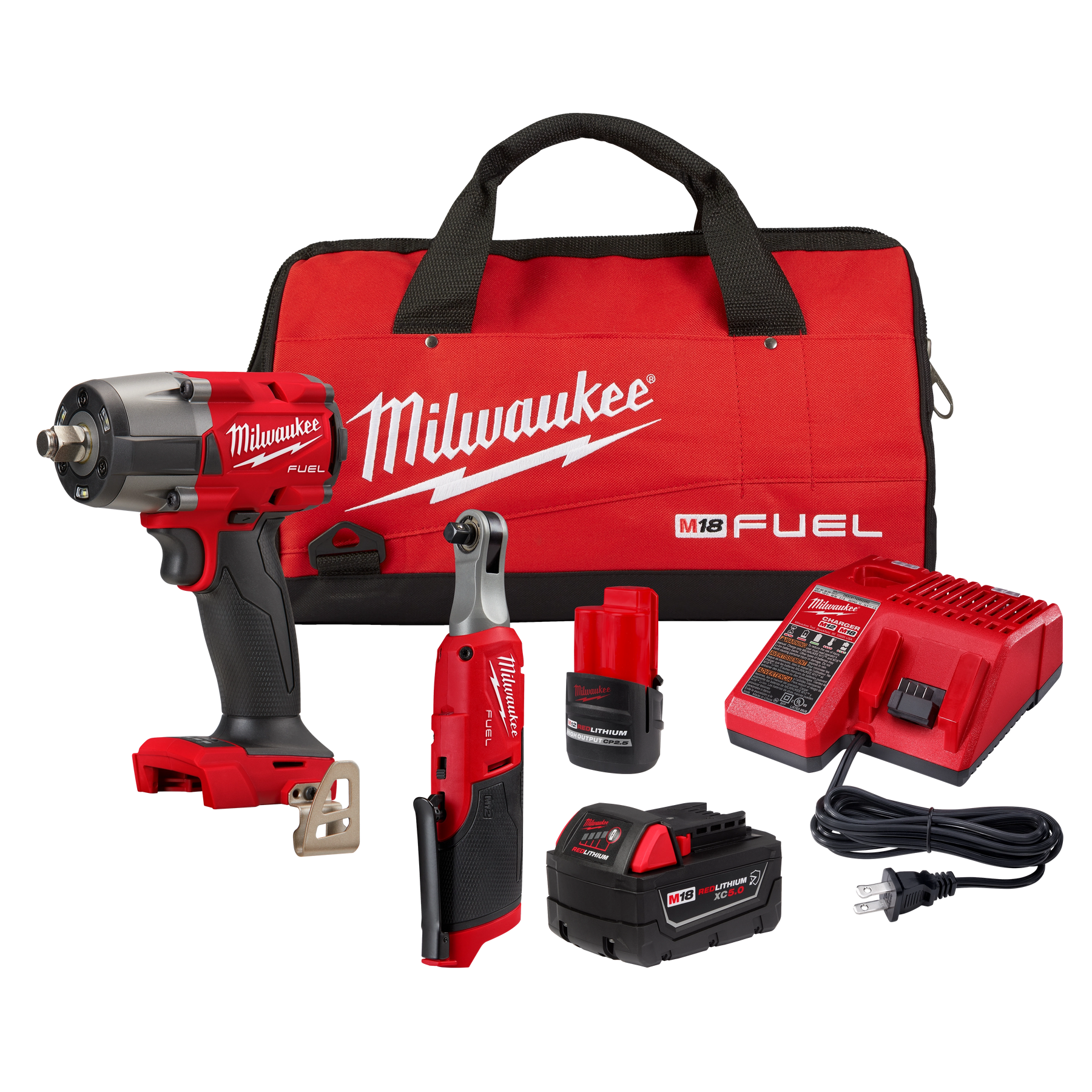 Q: What is included in the kit? A: M18 FORCE LOGIC press tool (2773-20), jaws 1/2–2 in. (49-16-2650 through 49-16-2655), two M18 CP2.0 batteries (48-11-1820), M18/M12 multi-voltage charger (48-59-1812), hard case, M18 FUEL ONE-KEY SAWZALL (2721-20), and one M18 5.0Ah battery (48-11-1850).