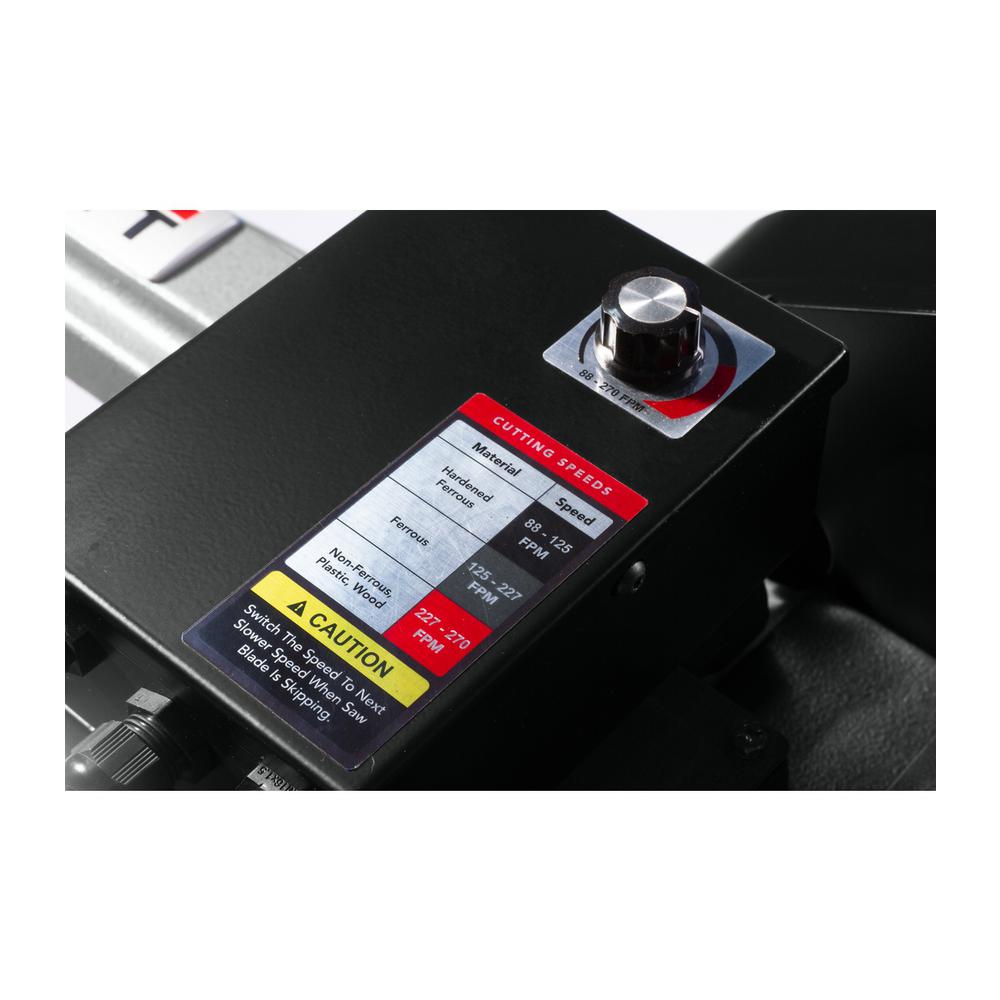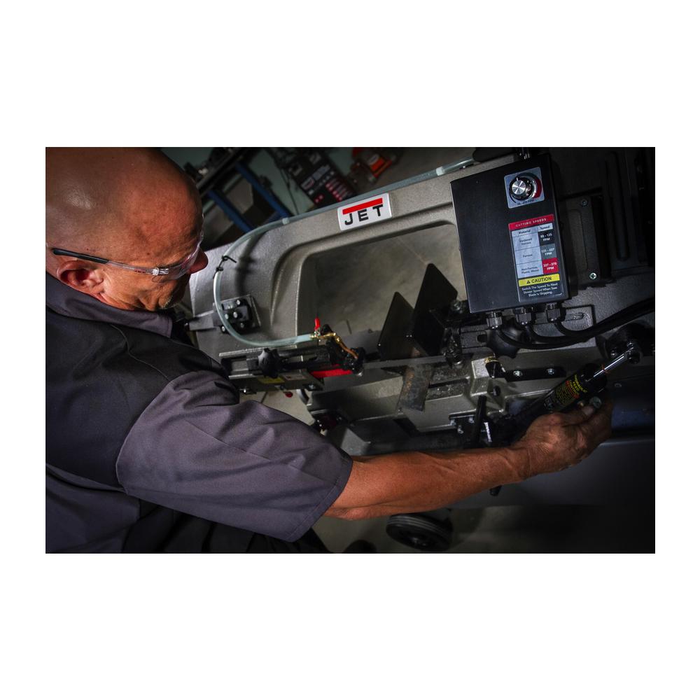 The Jet HVBS-712V Horizontal/Vertical Variable Speed metalworking bandsaw's industry-leading innovation is centered around increased output and operator safety. Powered by a 3-step gear 1 horse power DC motor, the HVBS-712V produces unbeatable torque while consuming less energy and is capable of producing speeds from 88 - 270 SFPM. Backed by Jet's 2-year warranty, this saw won't let you down.