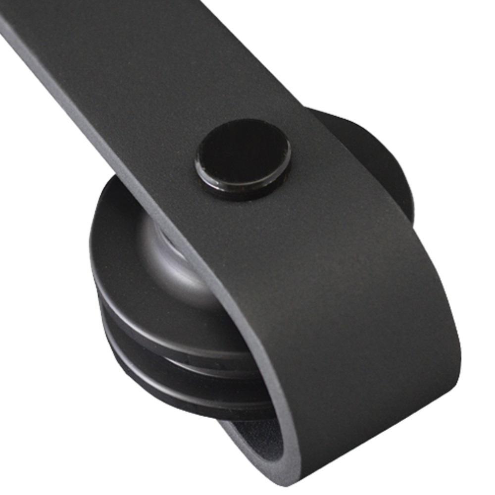 Bent strap mount barn door hardware kit is included for easy installation, kit comes in matte black