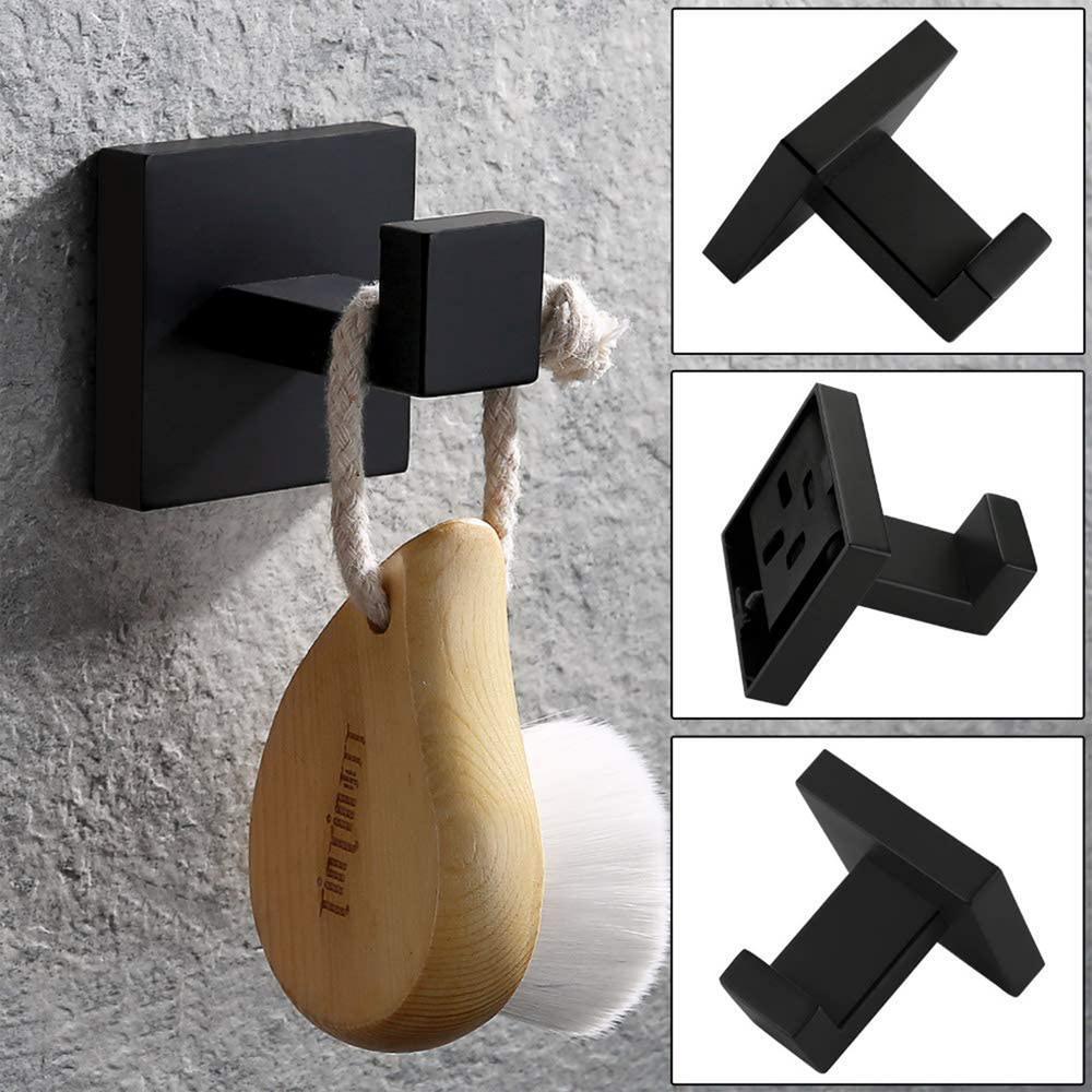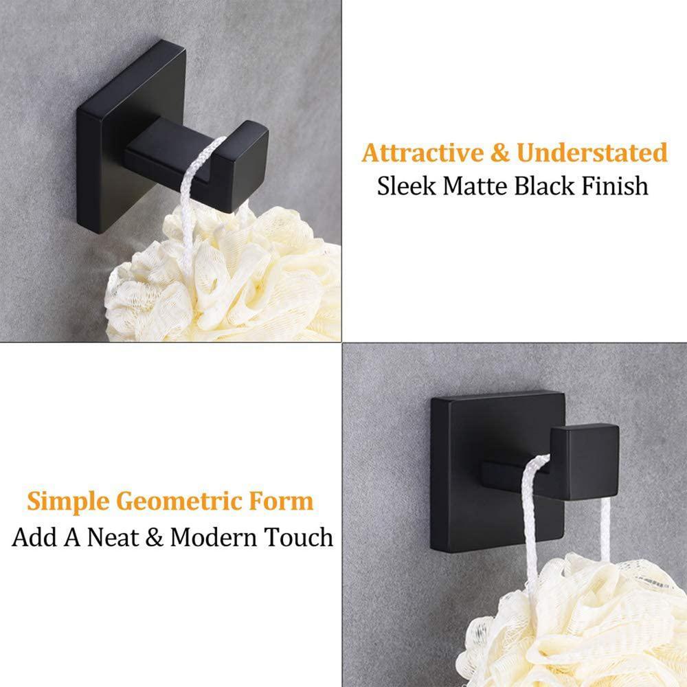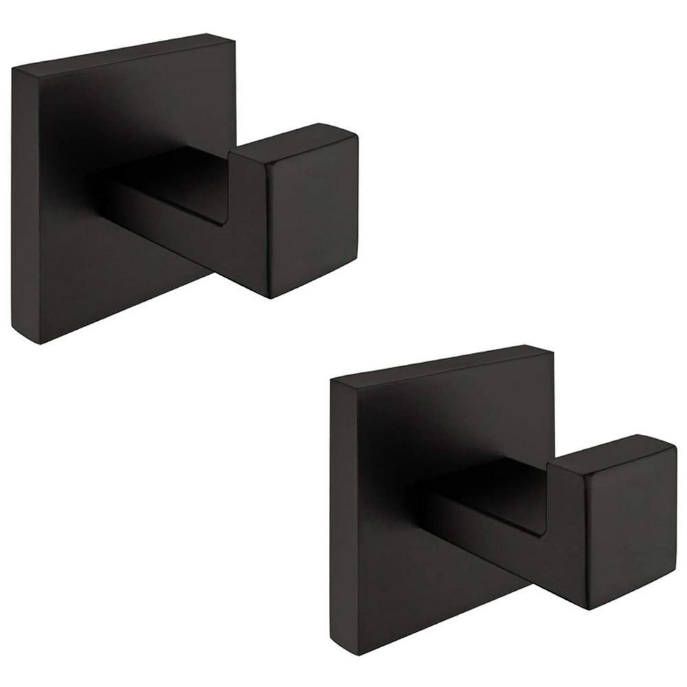 Square Bathroom Robe Hook and Towel Hook in Stainless Steel Matte Black (2-Pack)
