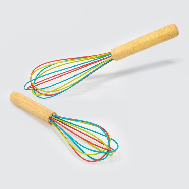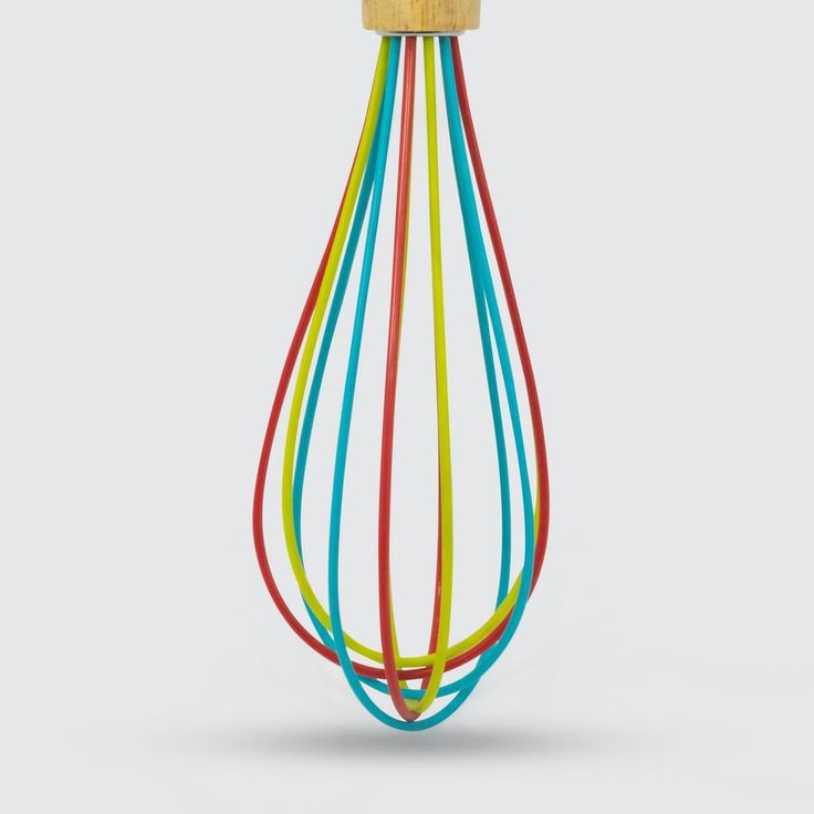 10 in. Silicone Tri-Color Whisk with Wooden Handle