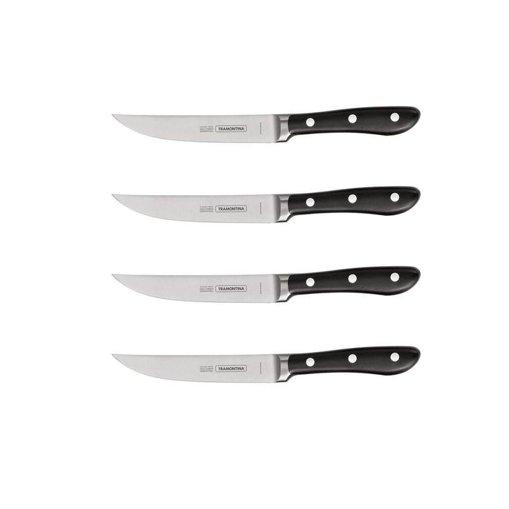 5 in. High Carbon Steel Full T Blade with Serrated Edge Steak Knife with Black Polycarbonate Handle (Set of 4)