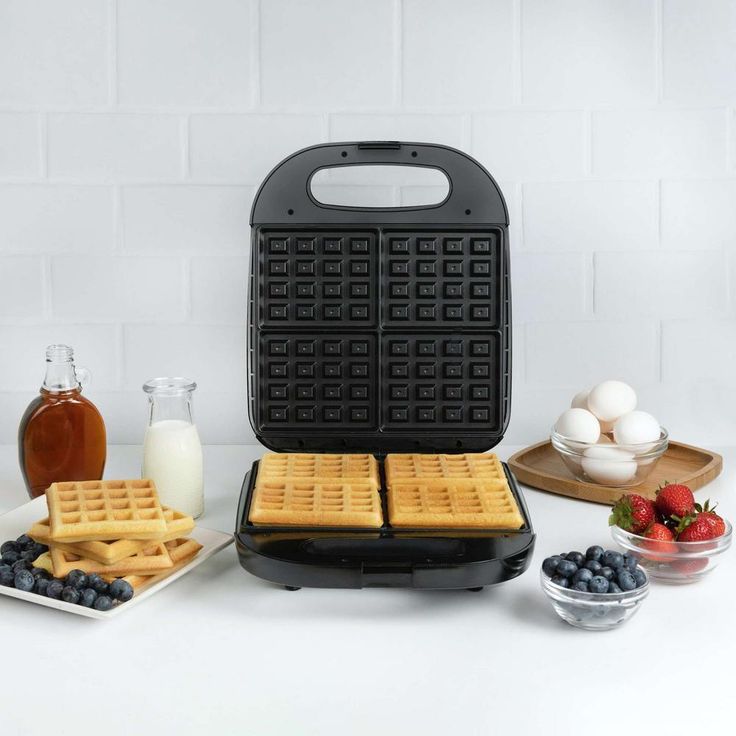 1400 W 4-Waffle Black Classic American Waffle Maker