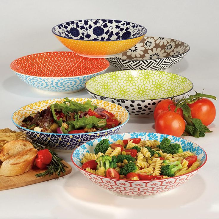 Chelsea Multicolored Porcelain 9 in. 32 oz. Dinner Bowls (Set of 6)