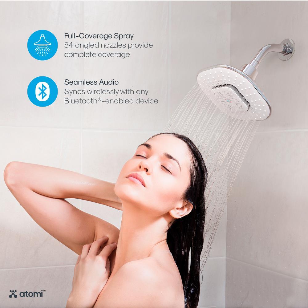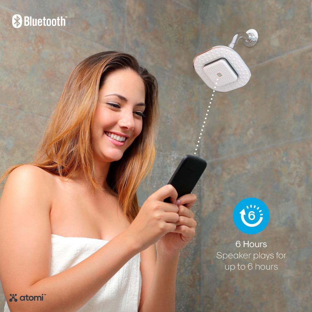 Shower in luxury with the Atomi Bluetooth Shower Head. It features a removable Bluetooth speaker that magnetically connects to the shower head and can also be used anywhere else in the house. The speaker even lets you answer phone calls. The shower head itself provides an 84-angled full-coverage nozzle for a revitalizing shower experience. To start using, simply pair the speaker with any Bluetooth-enabled device and enjoy up to 6 hours of playtime on a single charge.