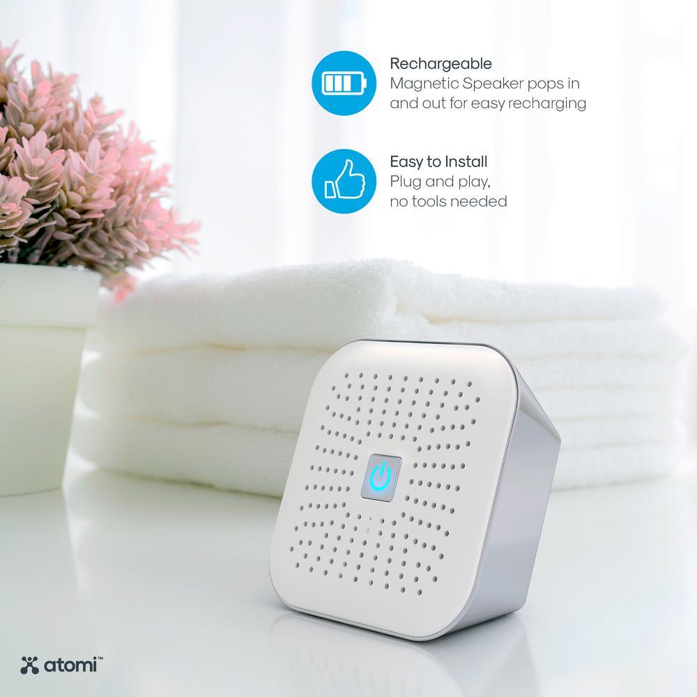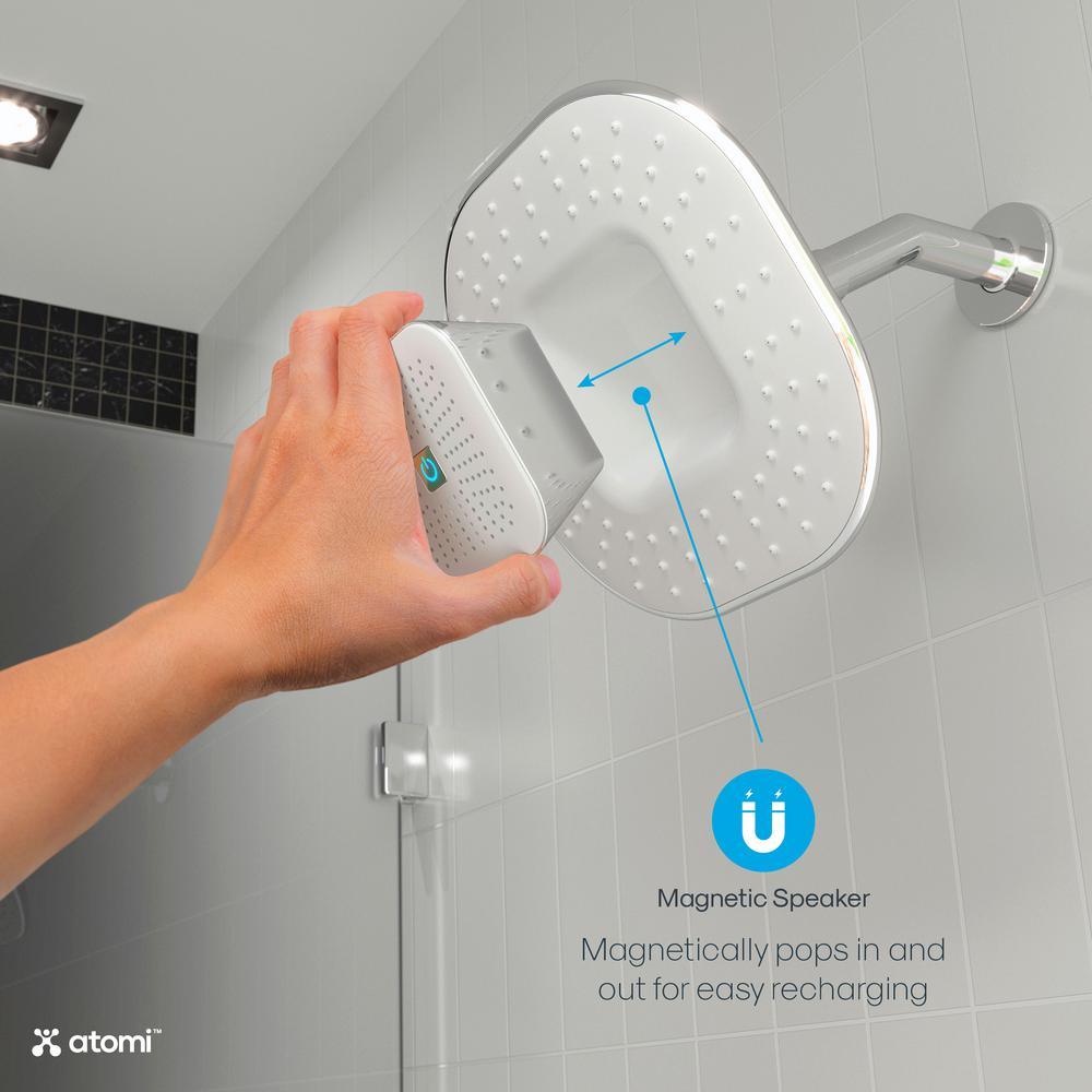• Easy installation and smart design - no tools needed, simply screw on the shower head and snap the magnetic speaker into place