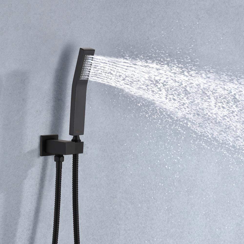 Shower kit includes 12 in. (30cm*30 cm) rain shower head, 8 in. hand shower and 7.87 in. Shower Arm, valve trim, and elbow, shower holder.
