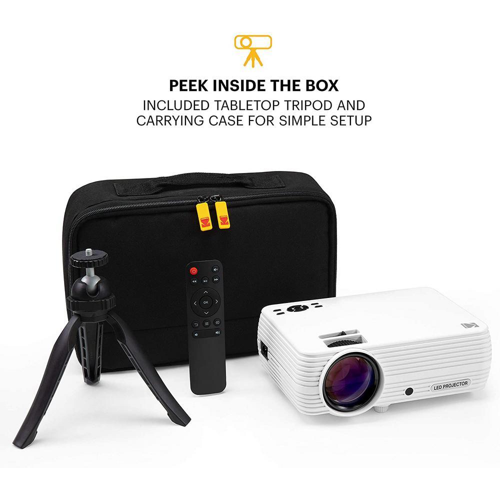 Ring the big screen to go, travel-friendly design fits an entire home theater system in 1 convenient device, set includes power cable, av cable, tripod, case and bonus wireless remote control, perfect for family game night, backyard movies, sharing photos, camping trips, playing PS3, PS4, XBOX ONE, WII and so much more