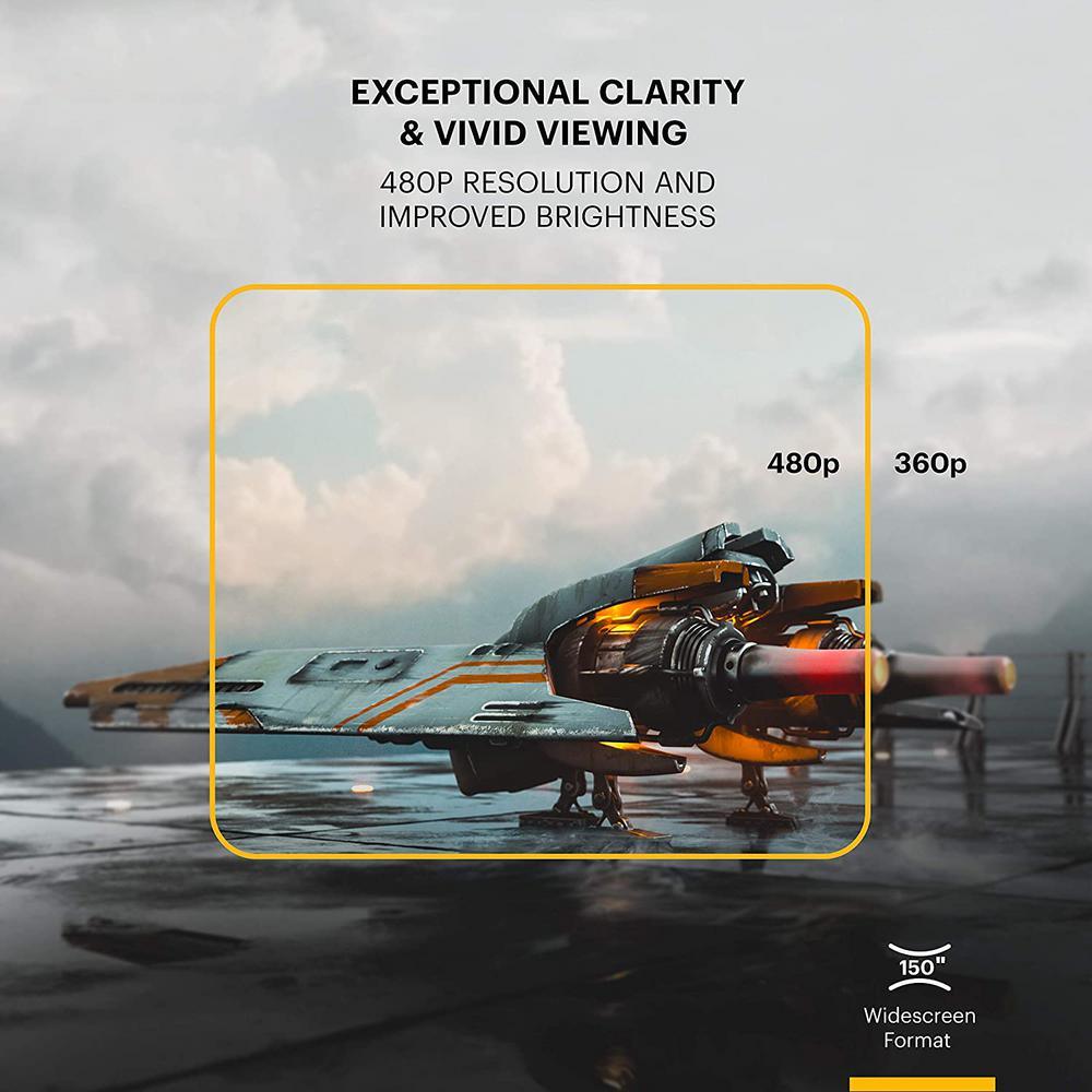 Spectacular big screen performance, mini home projector is slightly larger than similar compact projectors, delivering stunningly sharp images and true-to-life colors with 800x480p native resolution [full 1080p HD support], 2500:1 contrast and 16:9 aspect ratio, view all your favorite media indoors, outdoors-anywhere